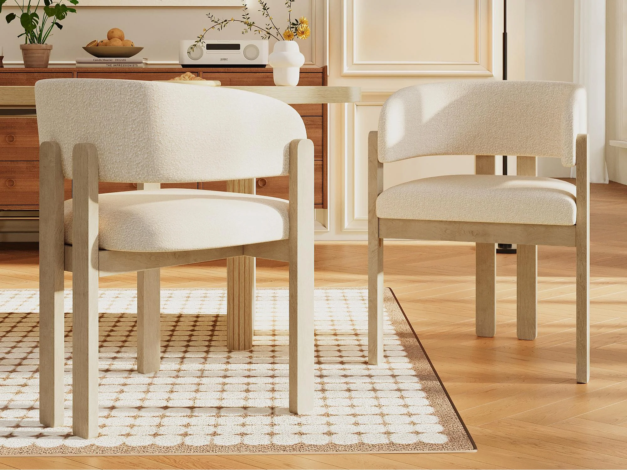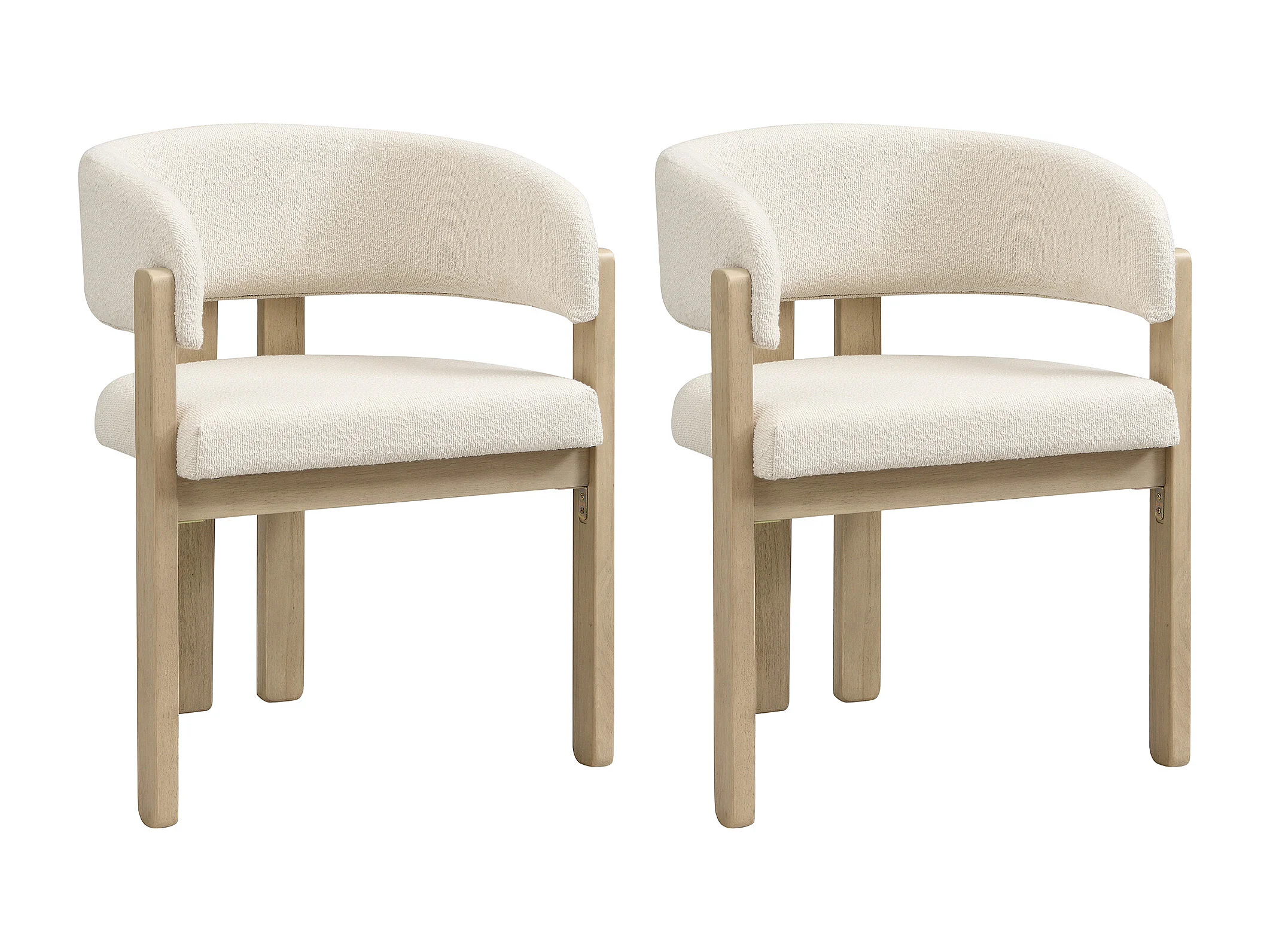 Kit di 2 sedie in legno massello con braccioli - Struttura in legno massello - Tessuto bouclé - Naturale