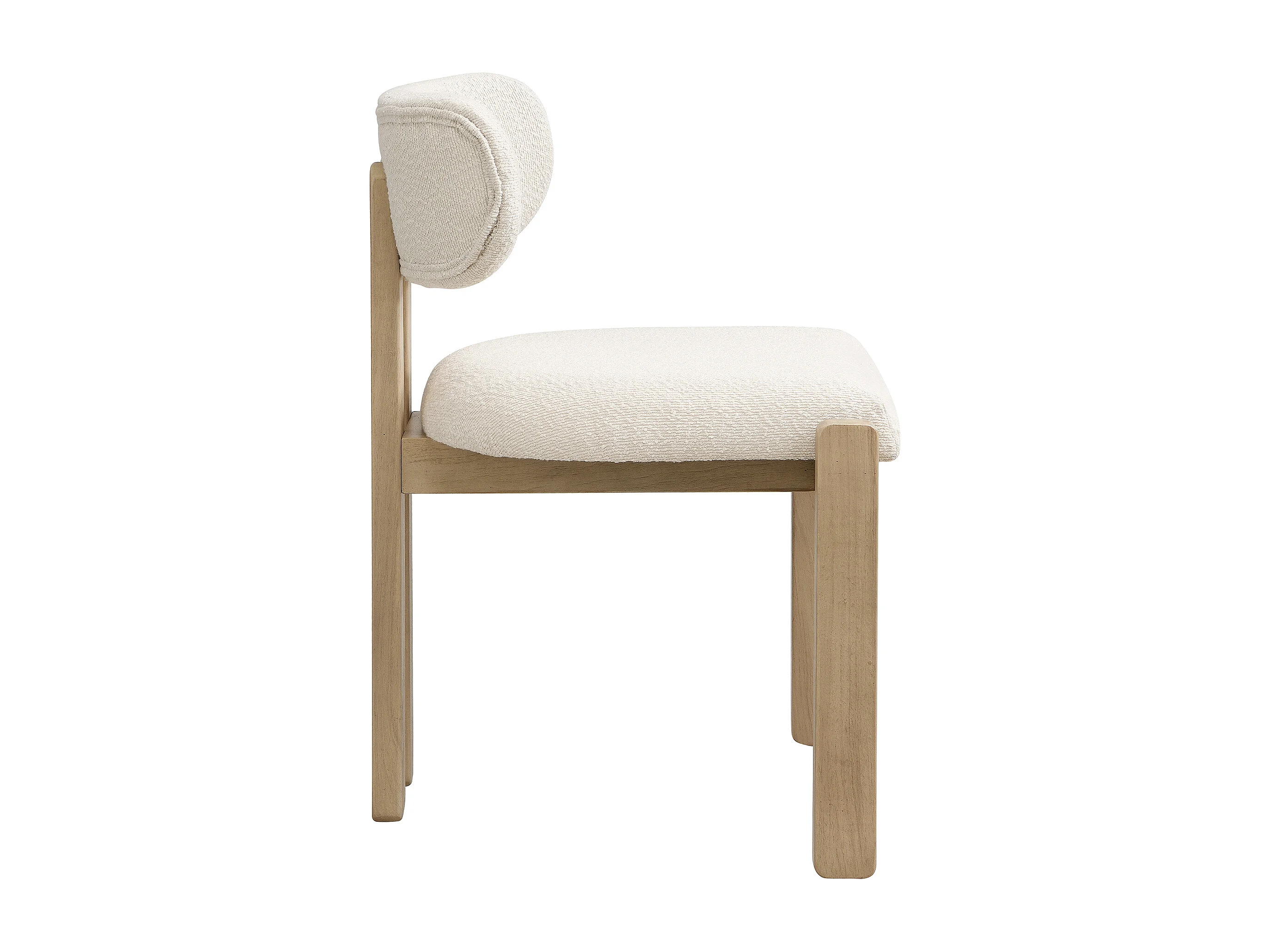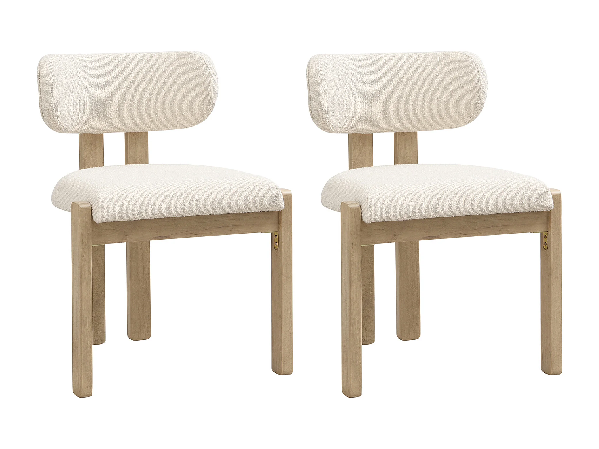 Kit di 2 sedie in legno massello - Stile moderno - Schienale comodo - Struttura in legno massello - Tessuto bouclé - Naturale