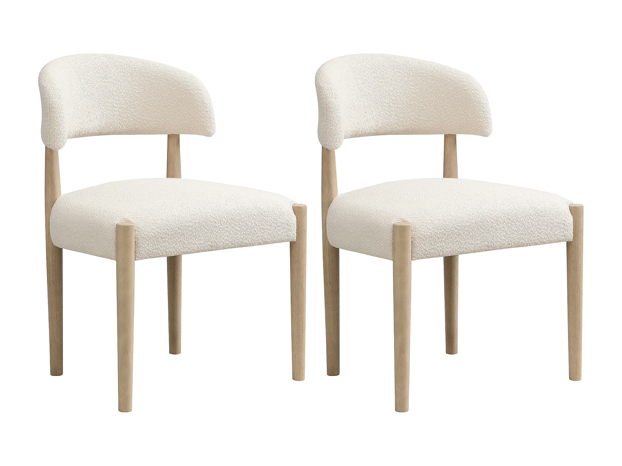 Kit di 2 sedie in legno massello - Stile moderno - Struttura in legno massello - Tessuto bouclé - Colore naturale