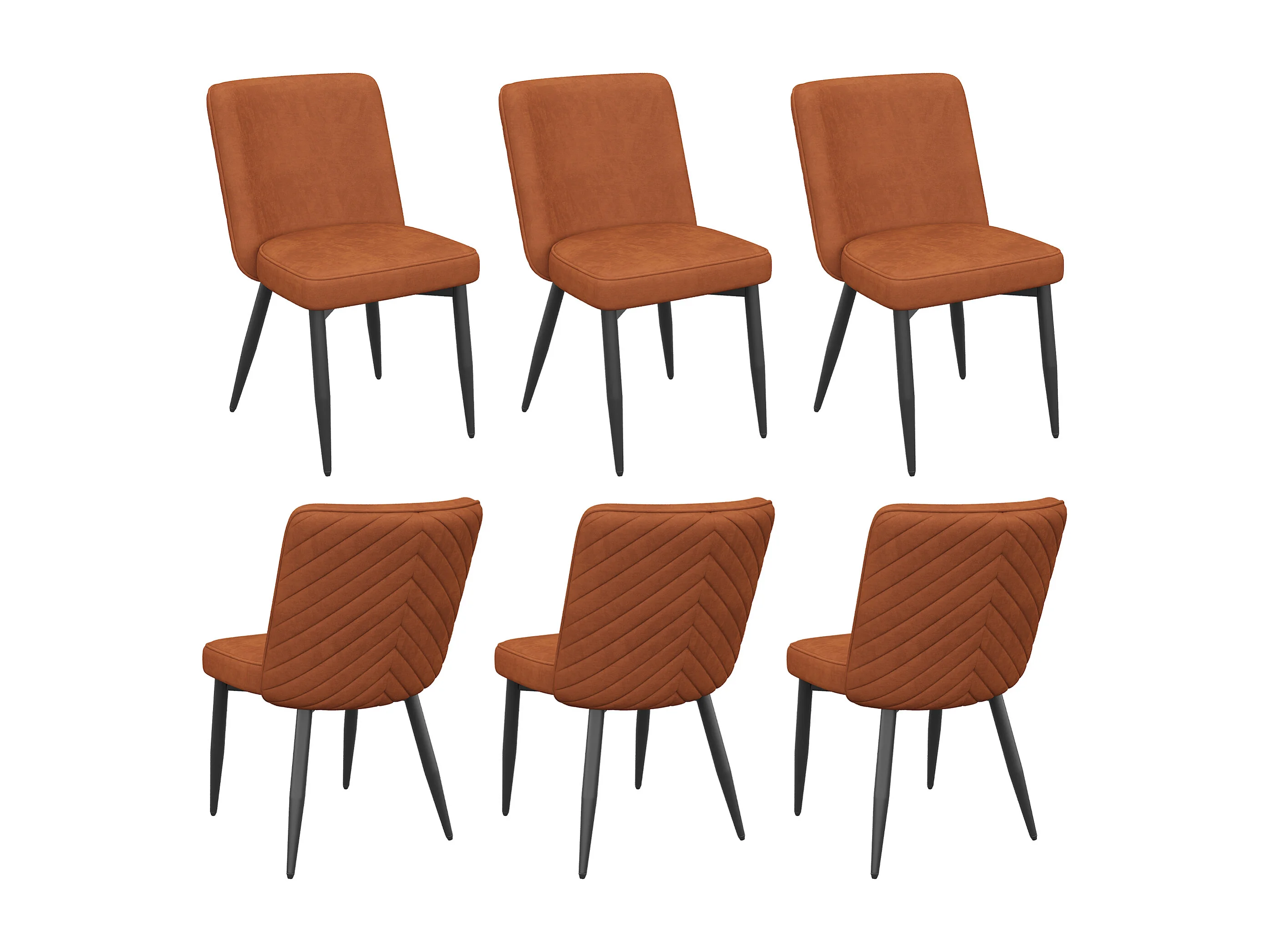 Kit di 6 sedie - Con schienali comodi - Stile moderno - Tessuto velluto - Arancione scuro