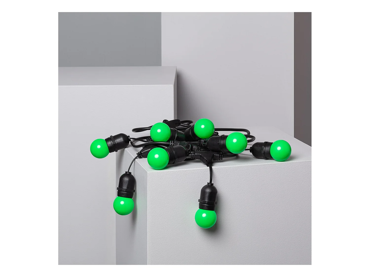 Kit Ghirlanda Waterproof 5.5m Nero + 8 Lampadine LED E27 G45 3W a Colori Verde