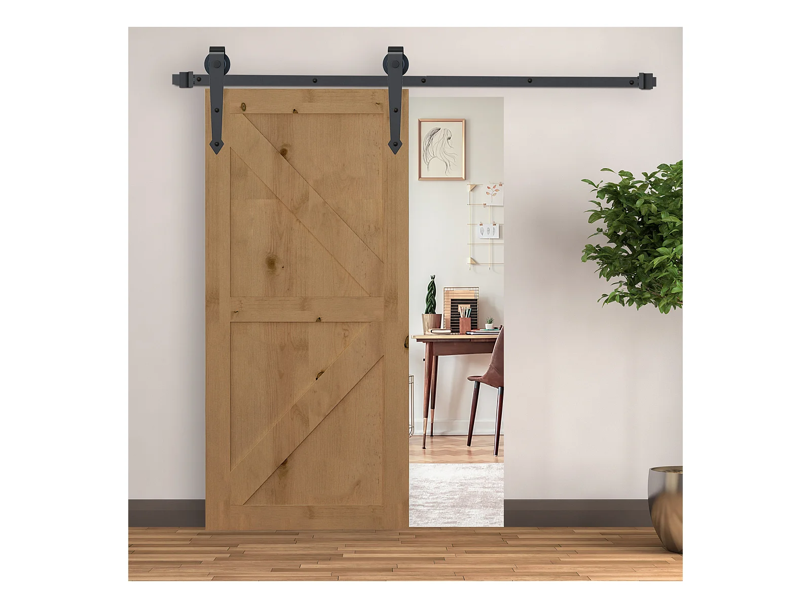 Kit per porta scorrevole stile country in acciaio nero