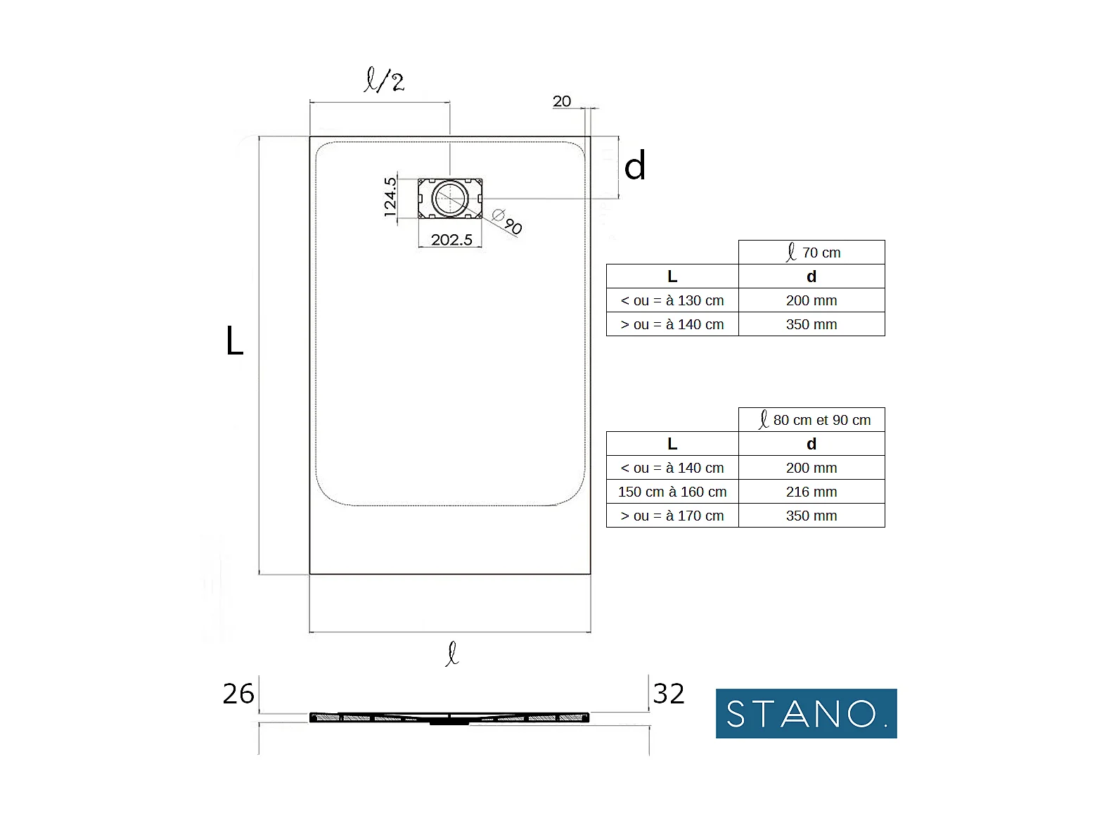 Kit Piatto doccia ultrasottile 90 x 120 cm bianco PIATTO + Colonna doccia termostatica Finitura nera opaca