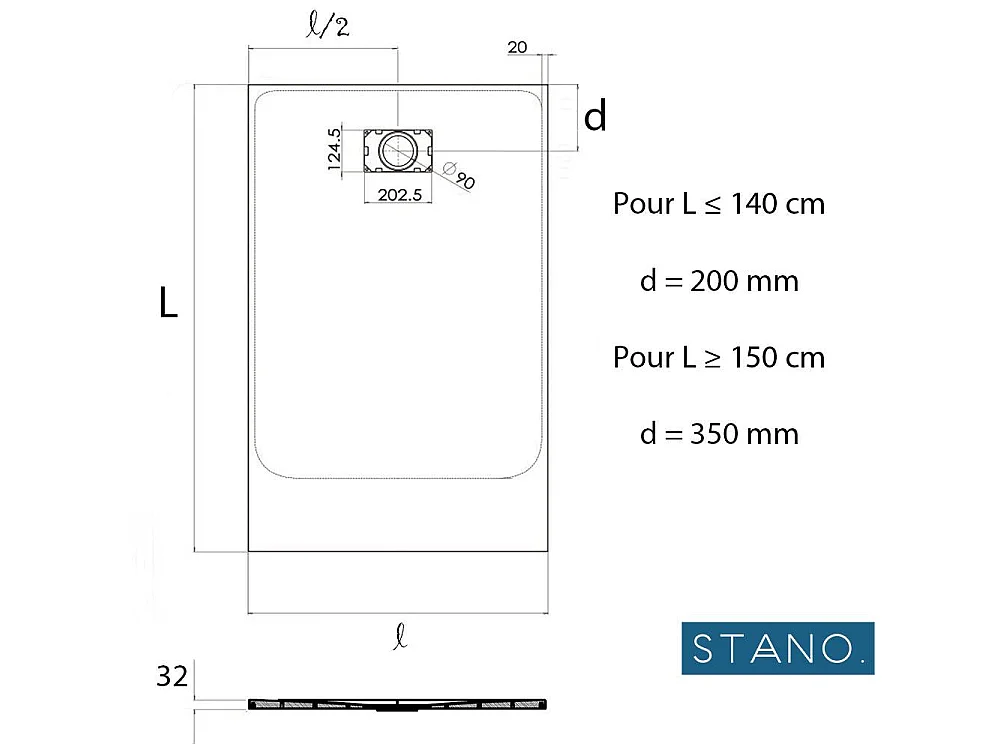 Piatto doccia ultrasottile 90 x 140 cm QUERA in resina finitura ardesia antracite