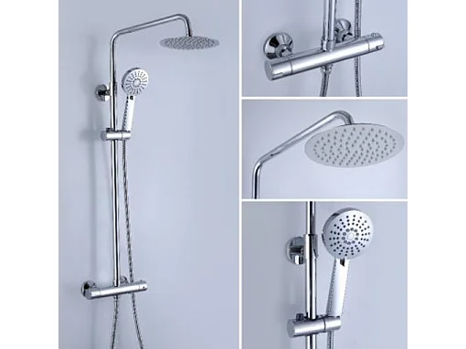 Kit Piatto doccia ultrasottile 90 x 140 cm PIATTO Grigio + Colonna doccia termostatica Finitura cromata