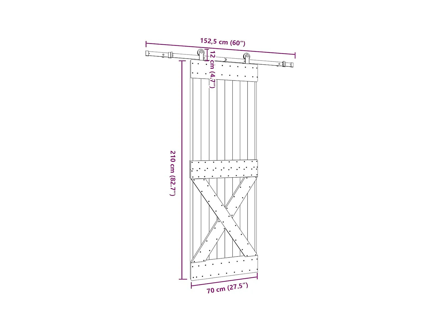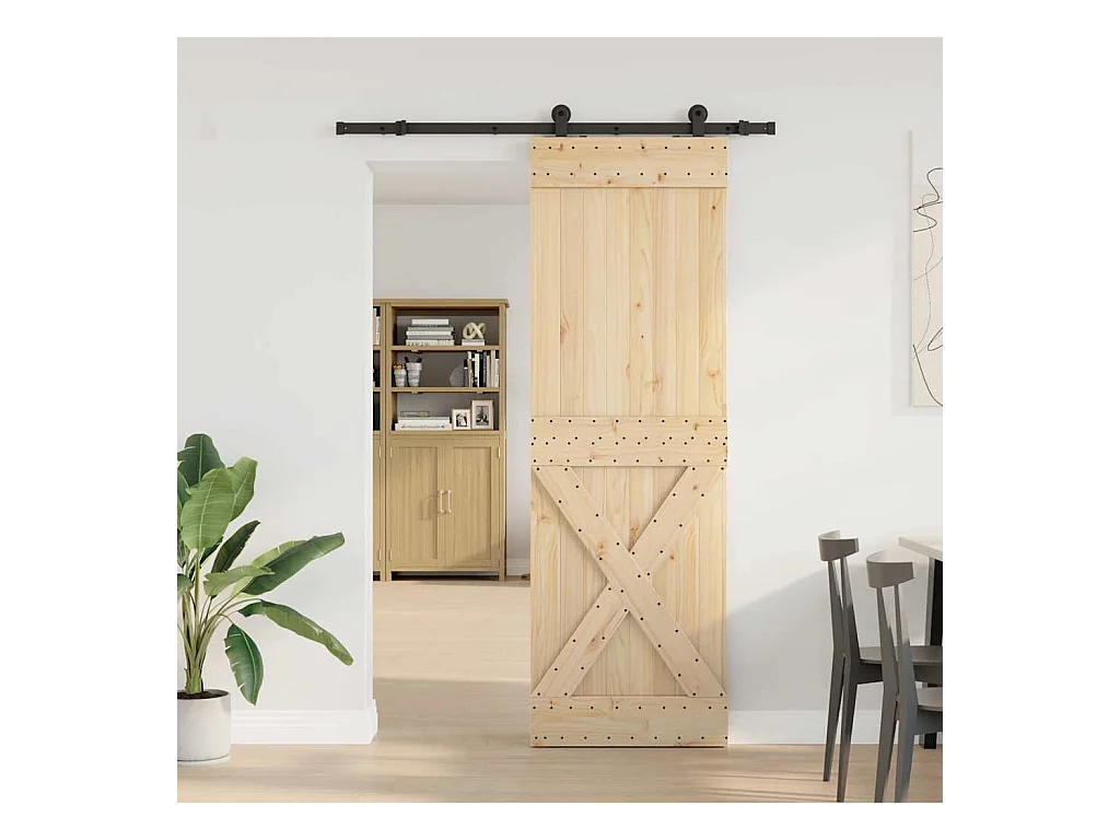 Kit porta scorrevole e ferramenta 70x210 cm in pino massello