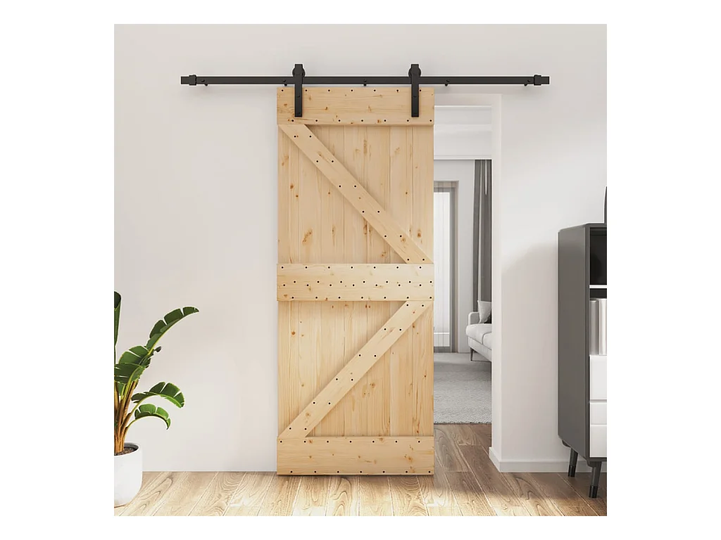 Kit porta scorrevole e ferramenta 85x210 cm in pino massello