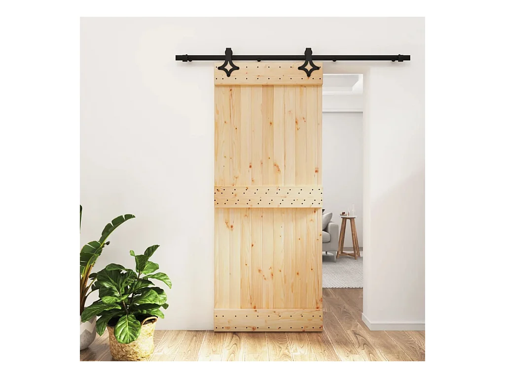 Kit porta scorrevole e ferramenta 85x210 cm in pino massello