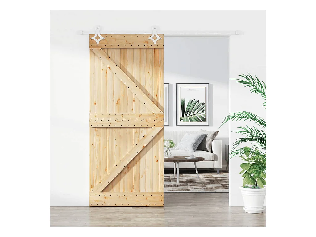 Kit porta scorrevole e ferramenta 90x210 cm in pino massello