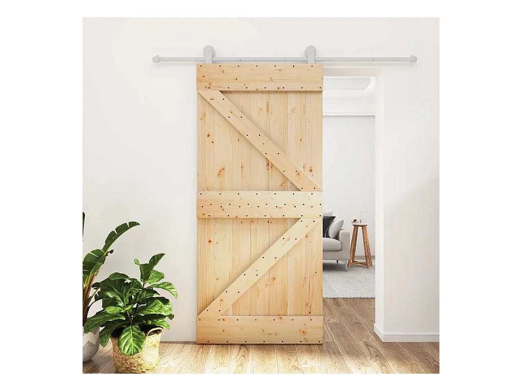 Kit porta scorrevole e ferramenta 85x210 cm in pino massello