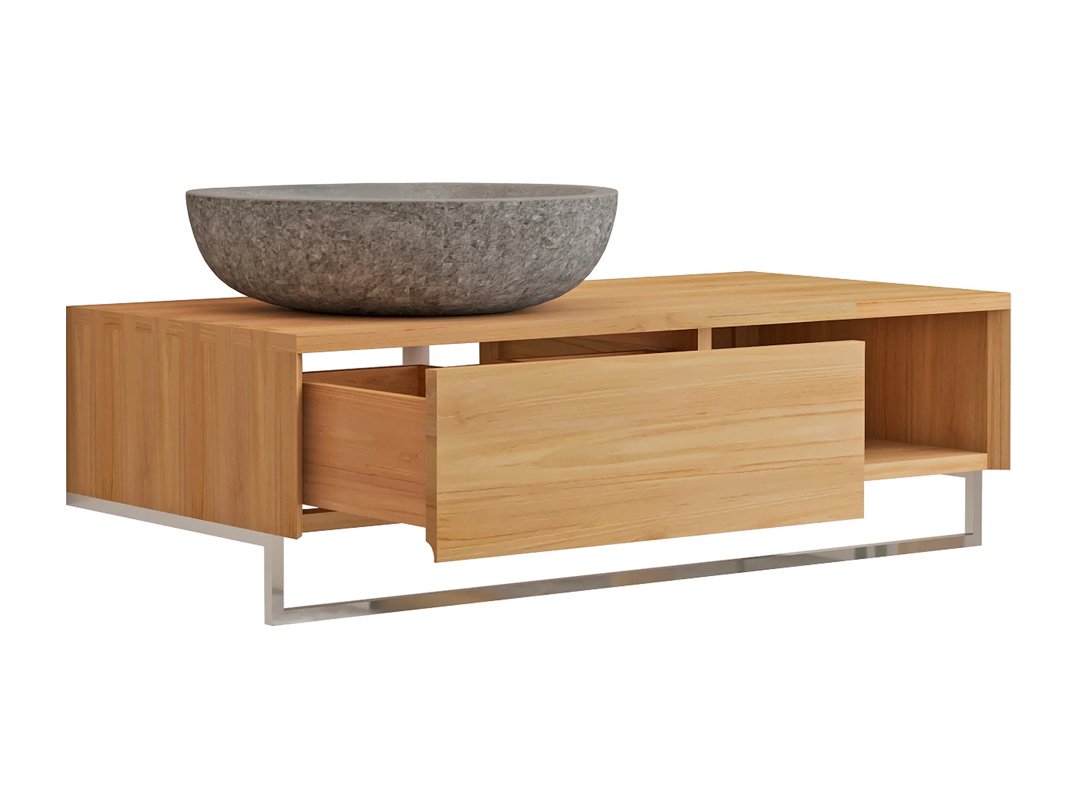 Mobile bagno sospeso in teak con portasciugamani e lavabo da appoggio grigio in pietra 105 cm - KUPANG