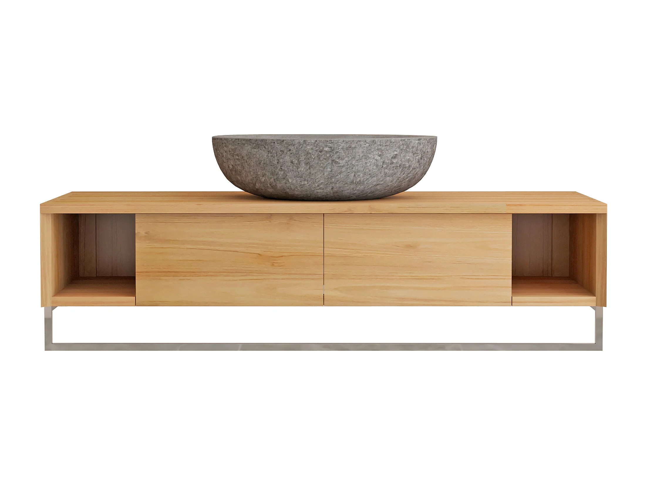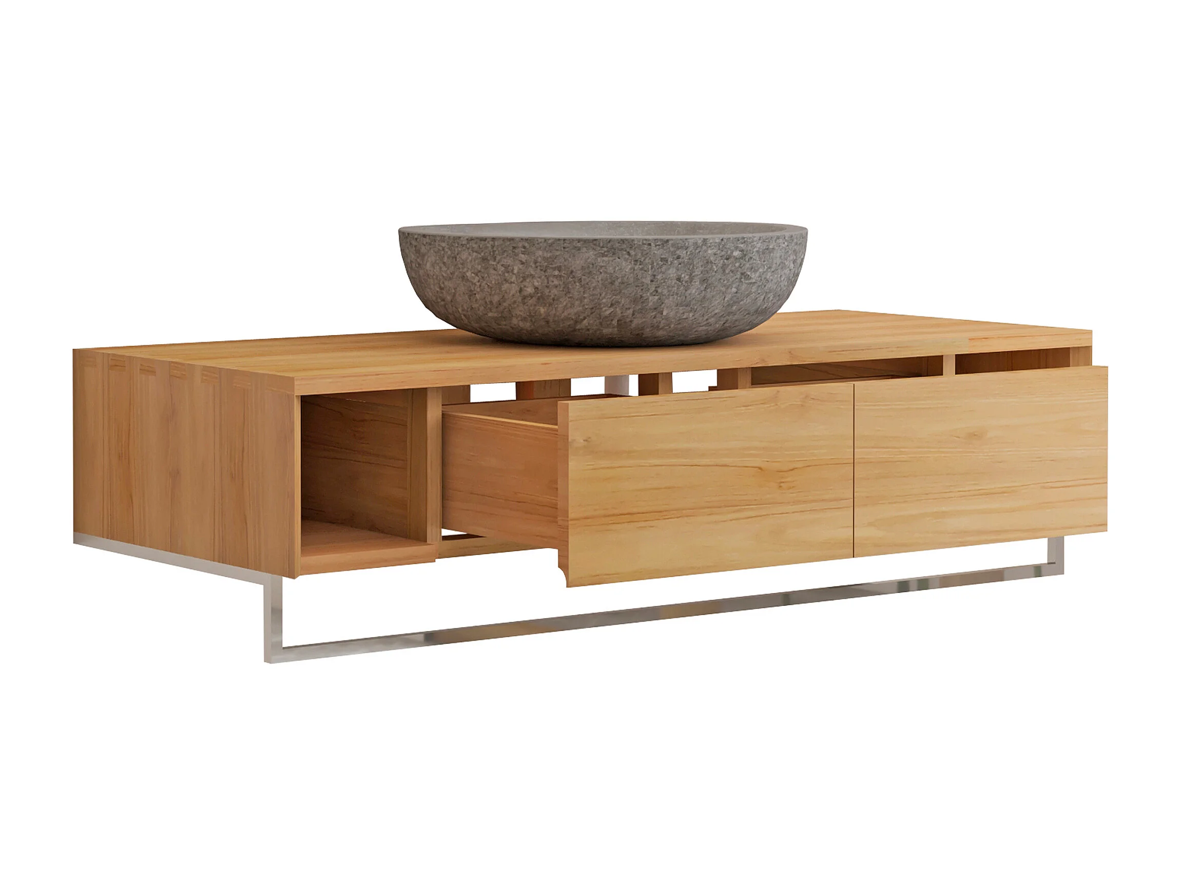 Mobile bagno sospeso in teak con portasciugamani e lavabo da appoggio grigio in pietra 120 cm - KUPANG