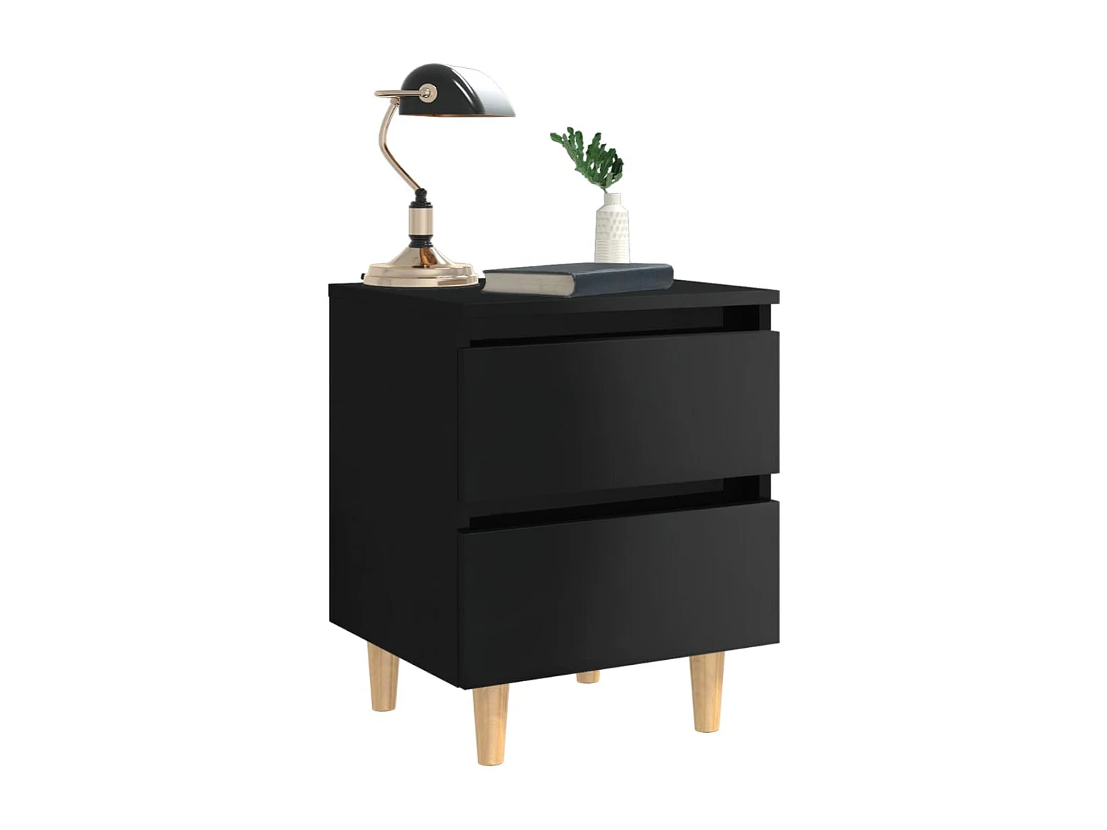 Comodino con 2 cassetti comodino cassettiera struttura del tavolo e cassetti gambe in pino effetto legno 60 cm nero 03_0003140
