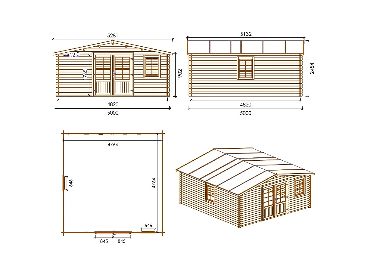 Casetta da giardino in legno - 20.00m2 - 5.00x4.00m - 28mm - colore: naturale - DOM526 - ALTANKA