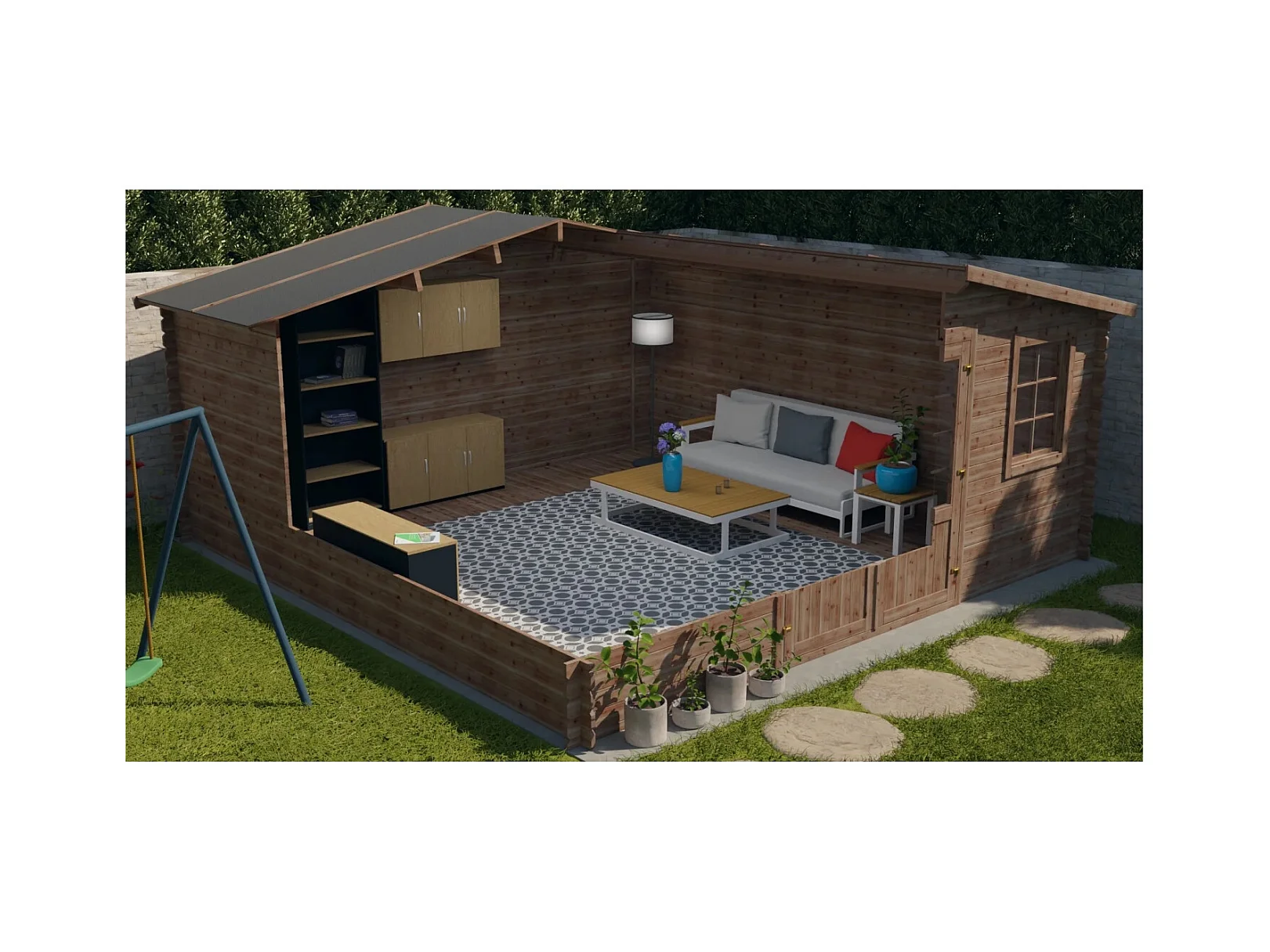 Casetta da giardino in legno – 4.00x3.00 m con estensione 4.00x2.76 m - 12.00 m² - DOM677+DOS194 - ALTANKA