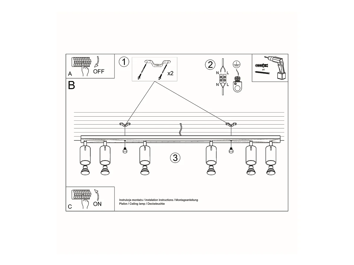 Sollux Lighting Nero Faretto da soffitto a barra, nero/cromo, 6x GU10