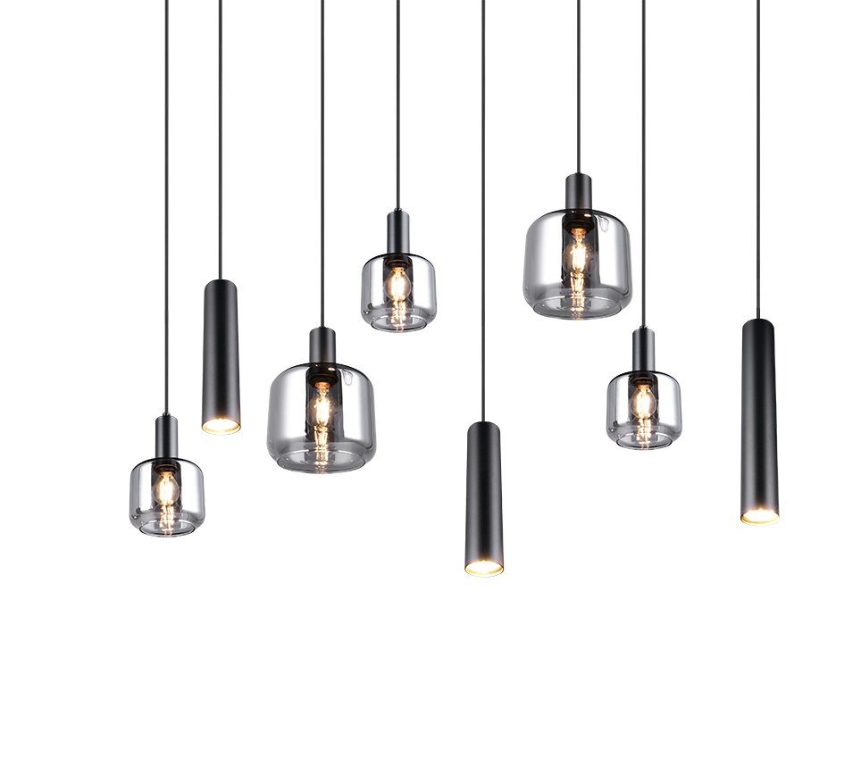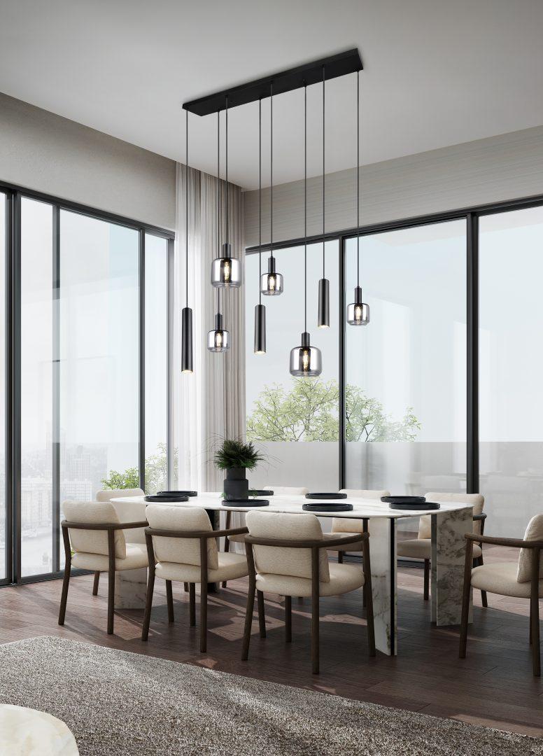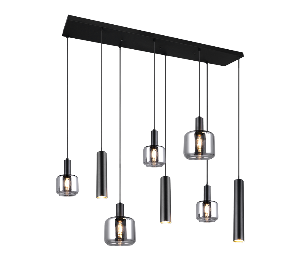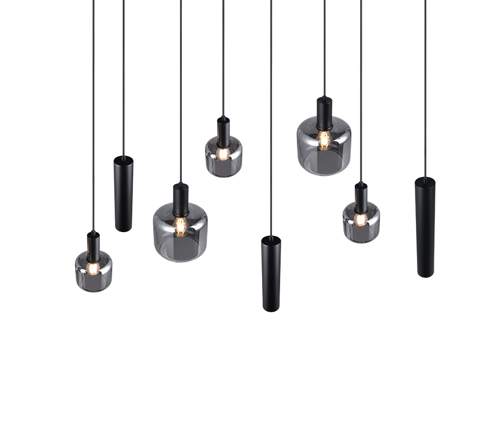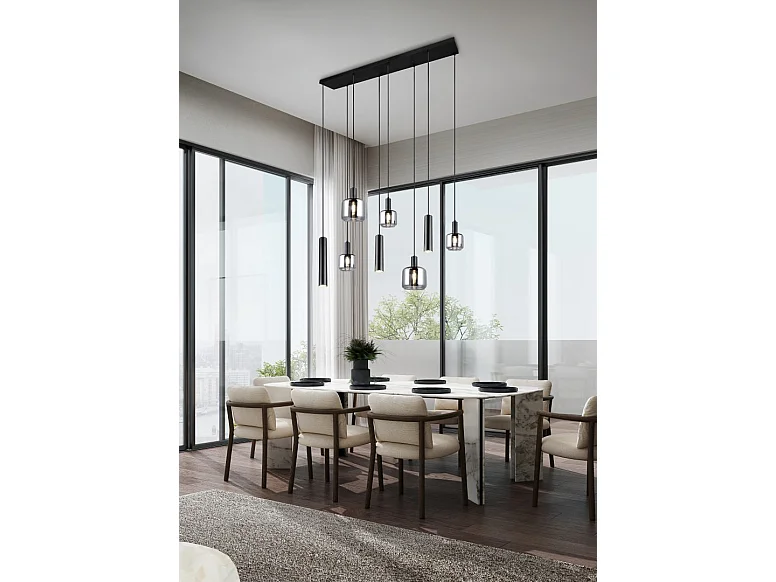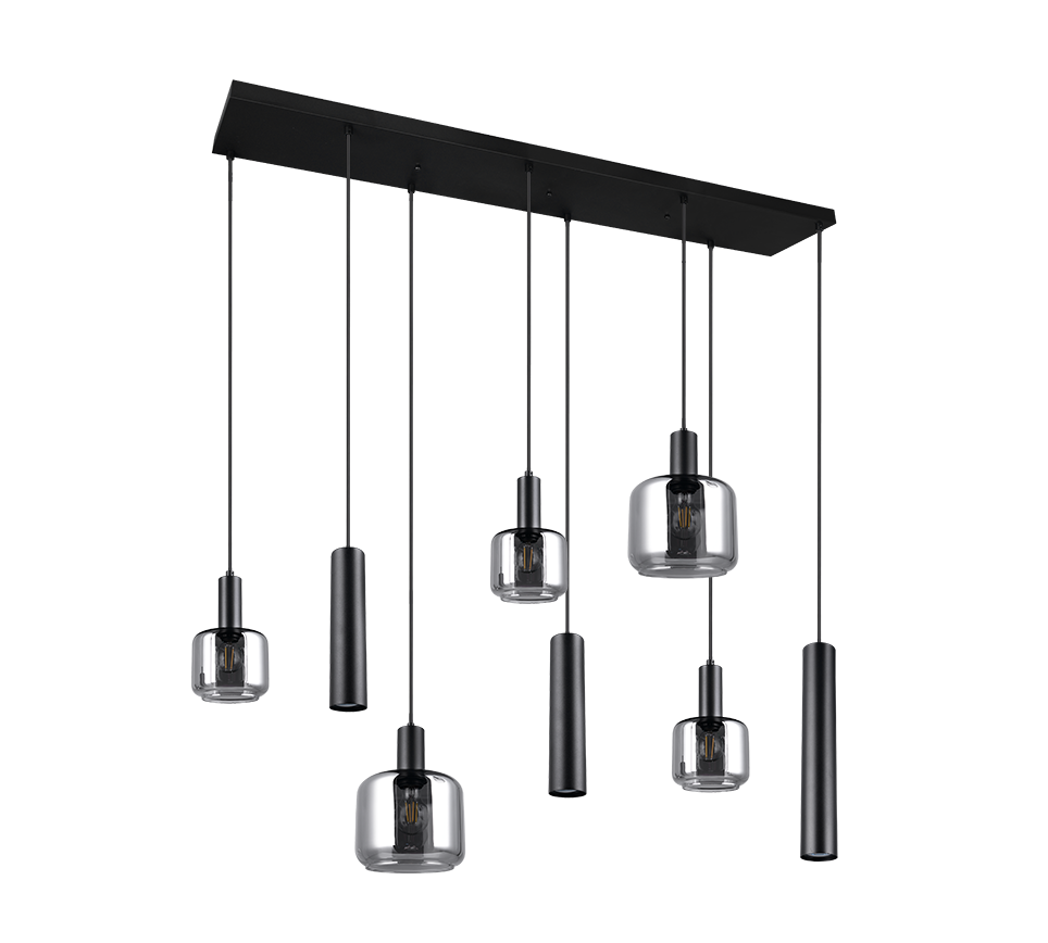 Lampada a sopensione 6 diffusori, metallo, nero e fumé, L 115 cm, Lumina