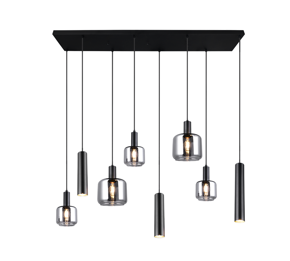 Lampada a sospensione 8 diffusori, vetro, nero e ambra, L 121 cm, Lumina