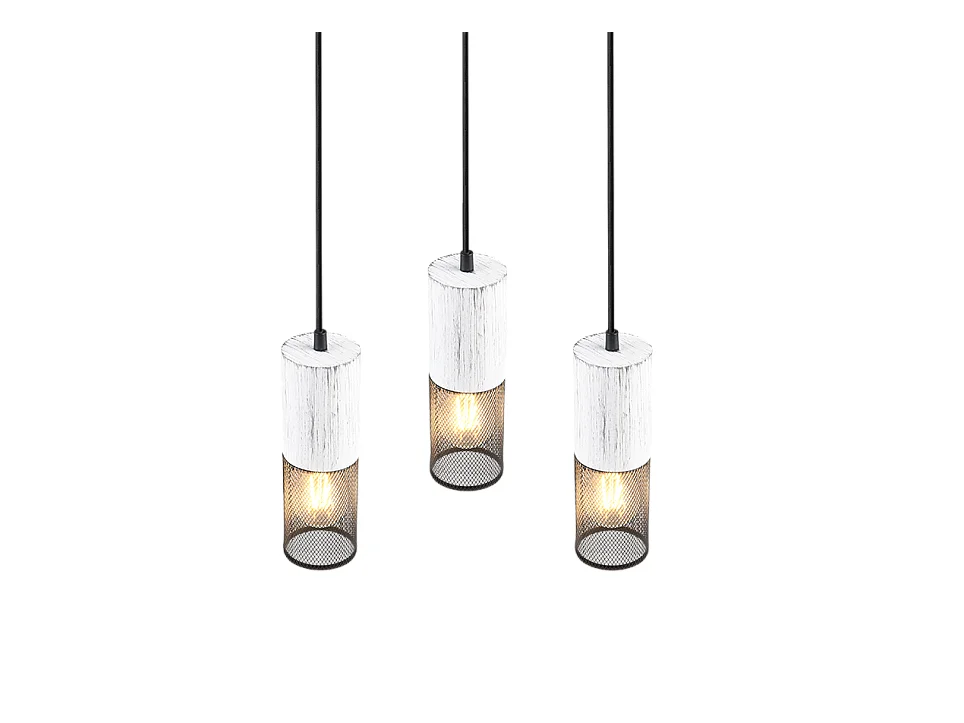 Lampada a sospensione 3 luci, legno e metallo, 60x150x8 cm, Agra