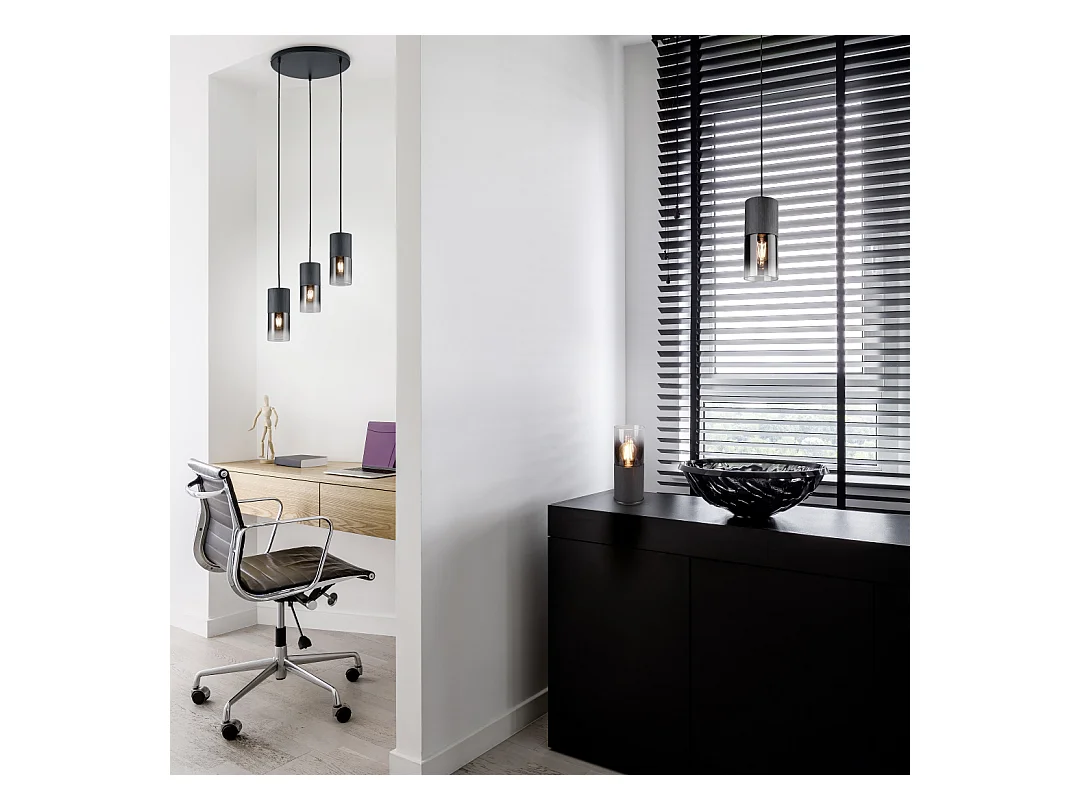 Lampada a sopensione 3 diffusori, metallo, nero e ambra, L 68 cm, Lumina