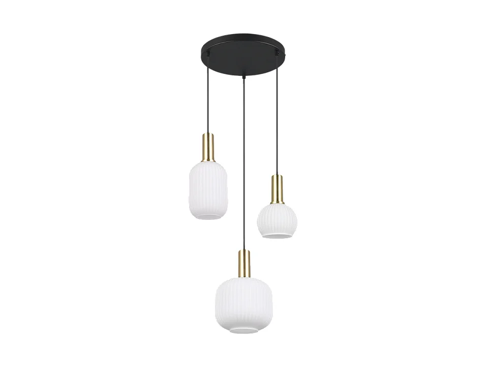 Lampada a sospensione 4 diffusori, metallo, nero e oro, L 75 cm, Jason