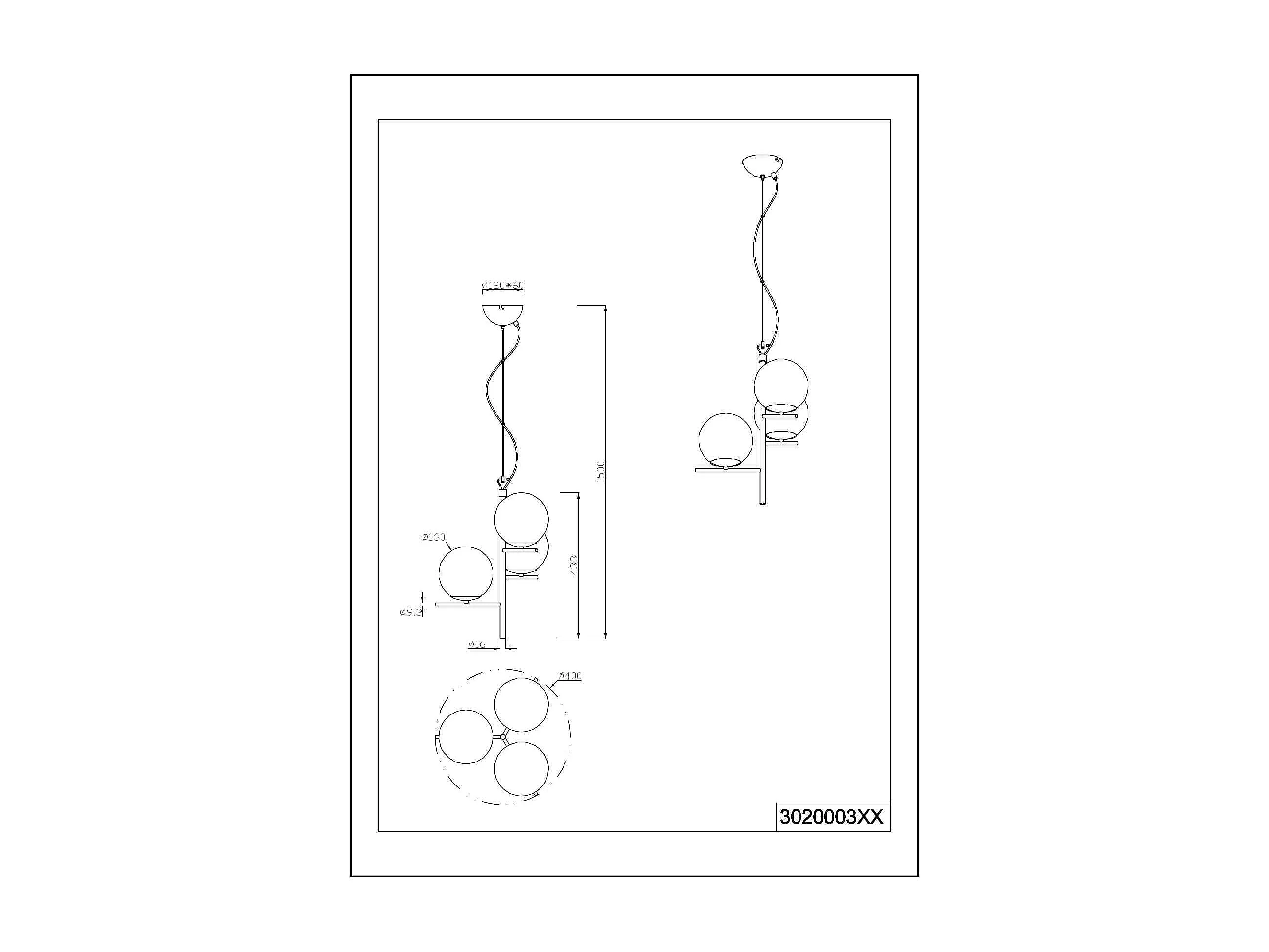 Lampada a sospensione 3 sfere, antracite e fumé, D 40 cm, Pure