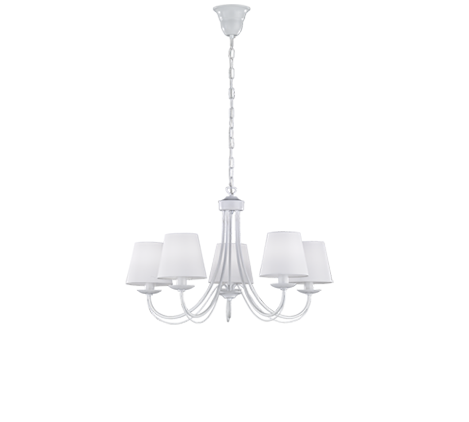 Lampada a sospensione 5 luci, metallo, bianco opaco, 70x150x70 cm, Cortez