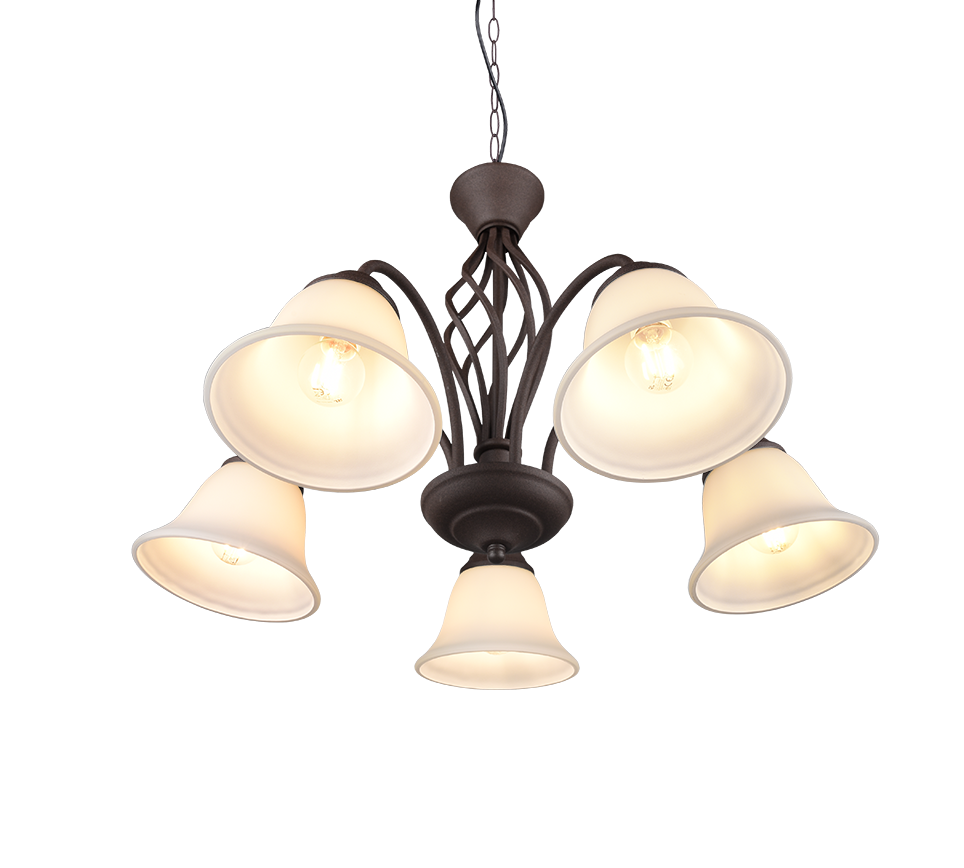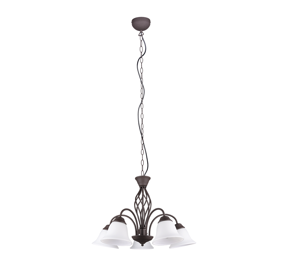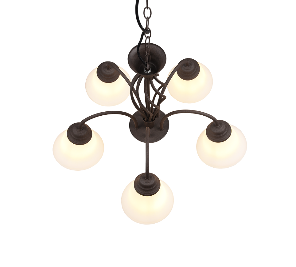 Lampada a sospensione 5 luci, metallo, ruggine, 60x150x60 cm, Rustica