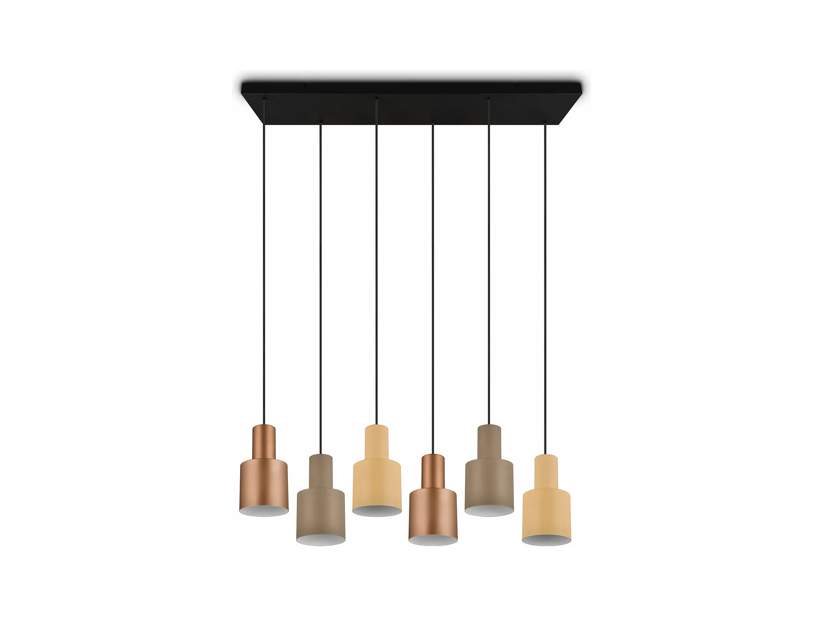 Lampada a sospensione 6 diffusori, metallo, multicolor, 85x150x27 cm, Agudo