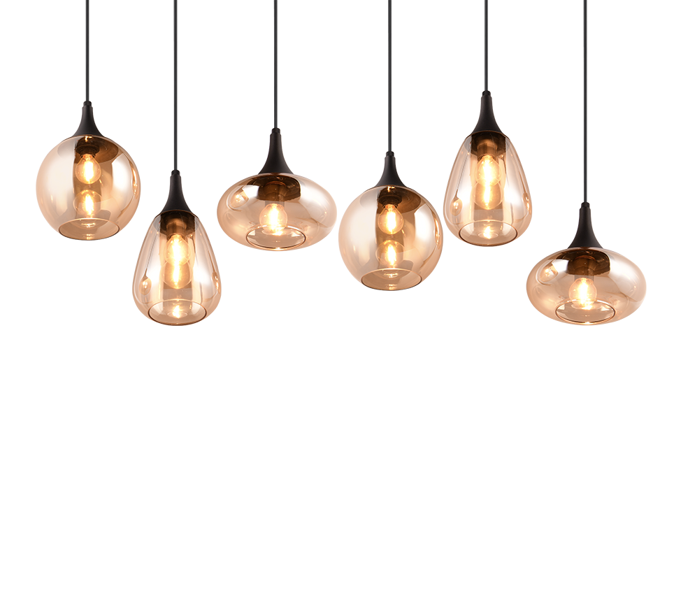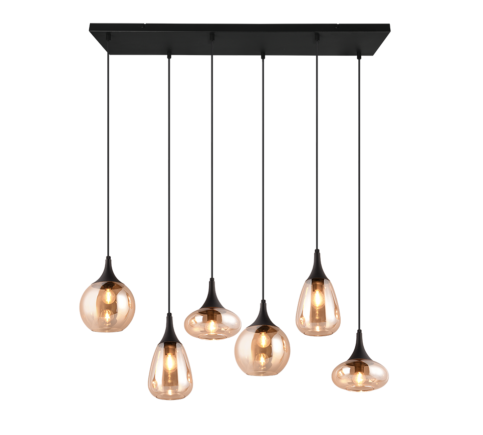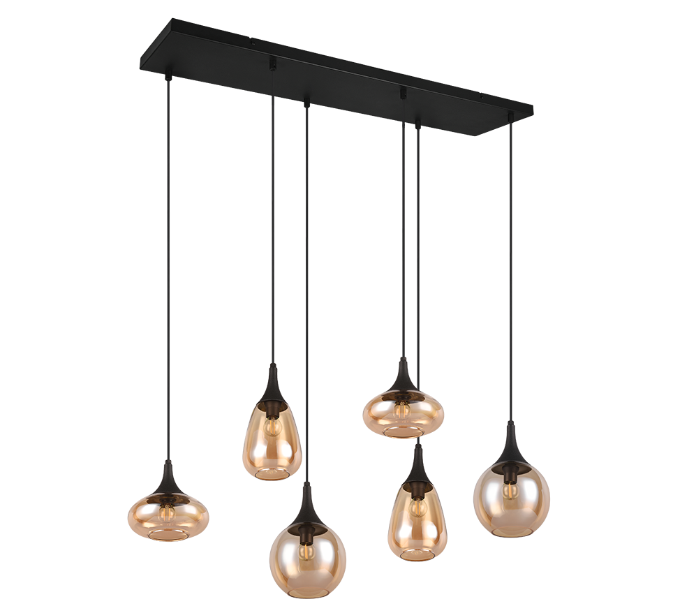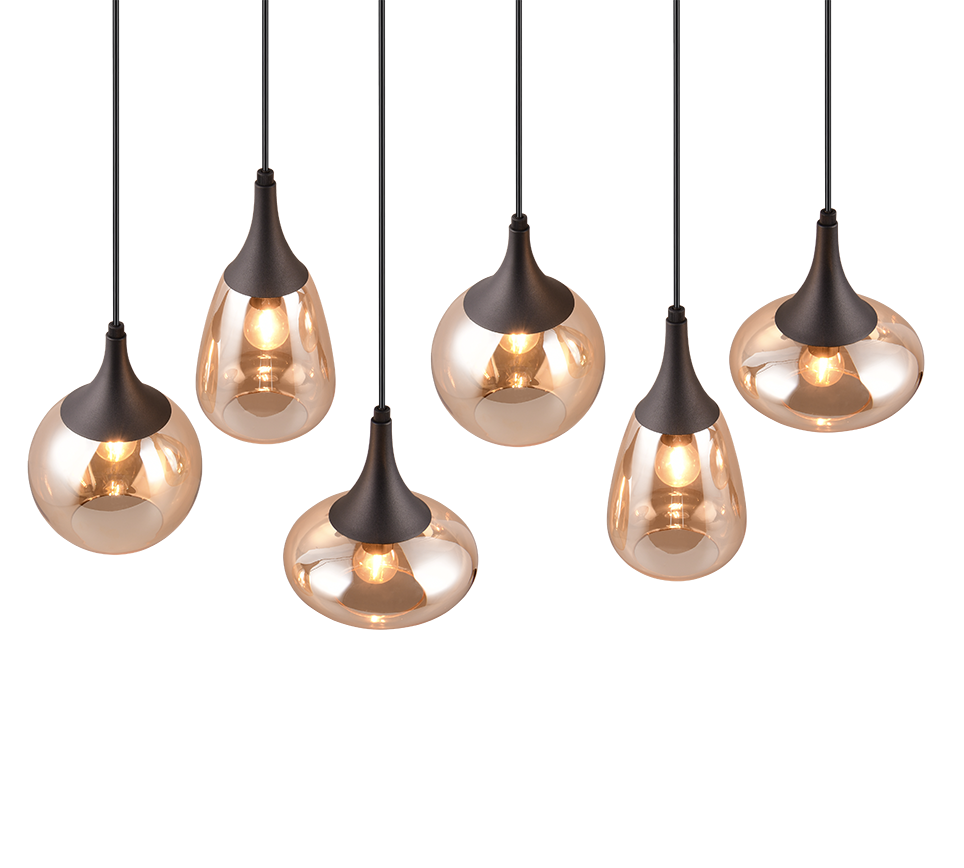 Lampada a sospensione 8 diffusori, vetro, nero e ambra, L 121 cm, Lumina