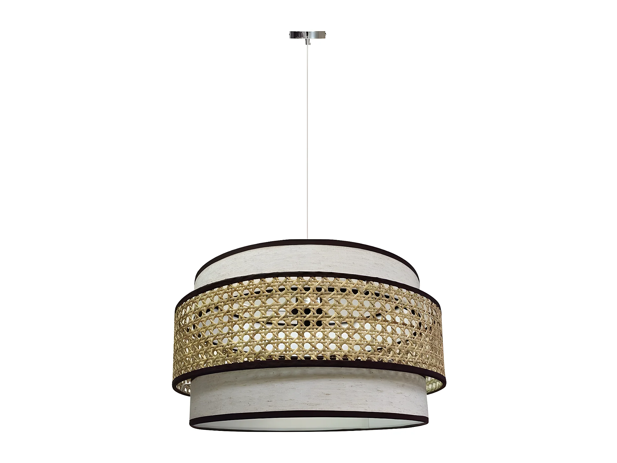 Lampada a sospensione Sifonte con paralume in lino bianco e strisce in rattan 1xE27 ø40cm