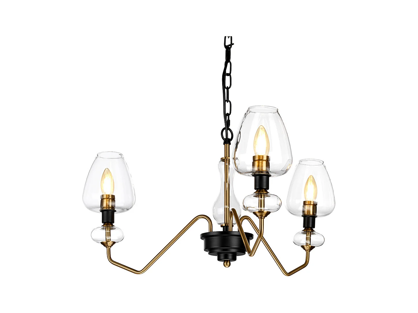 Searchlight Bijou Lampadario a 3 luci in ottone anticato, bicchiere di champagne