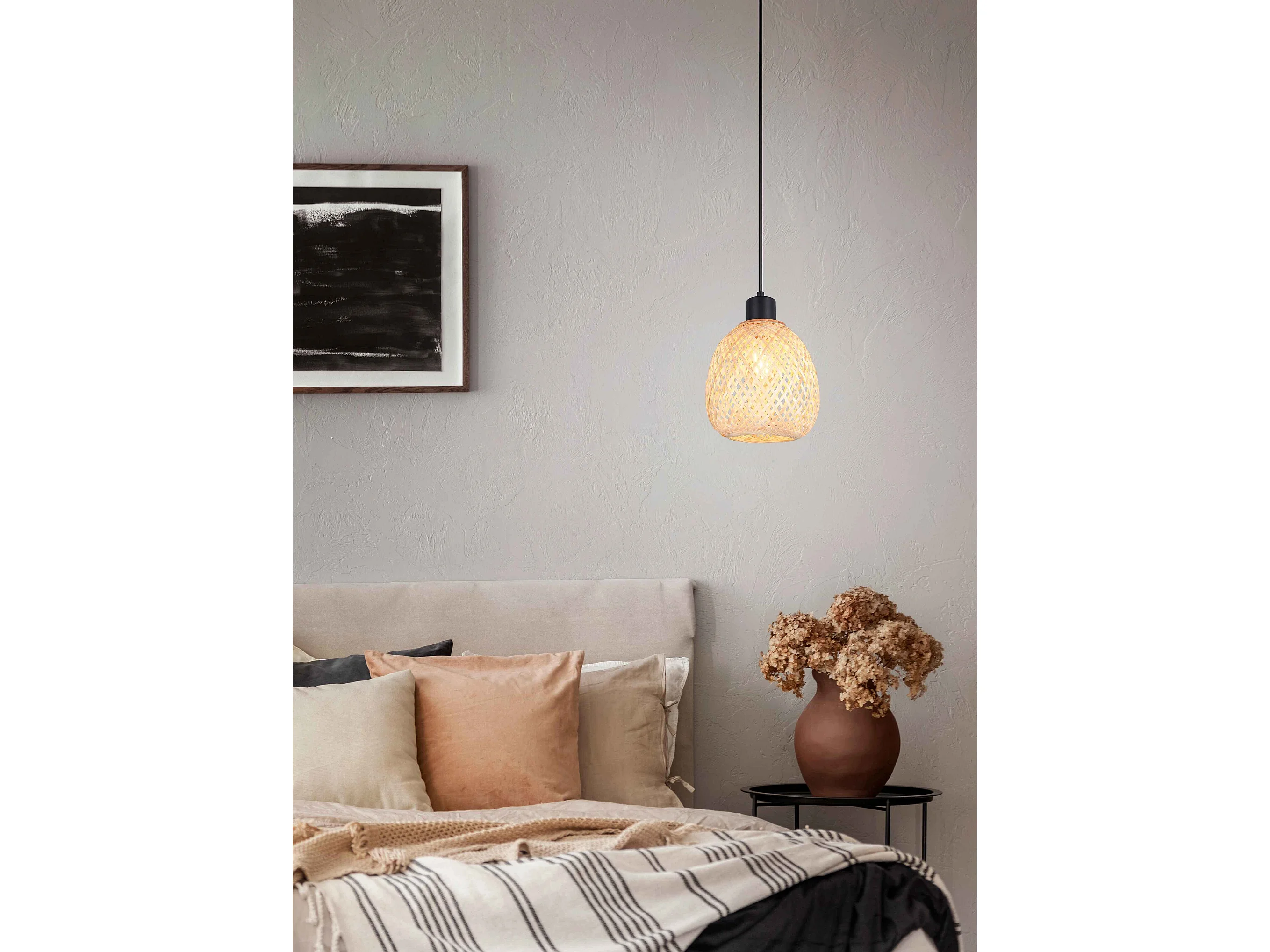 Lampada a sospensione, bambù e metallo nero, D 18 cm, Amelie