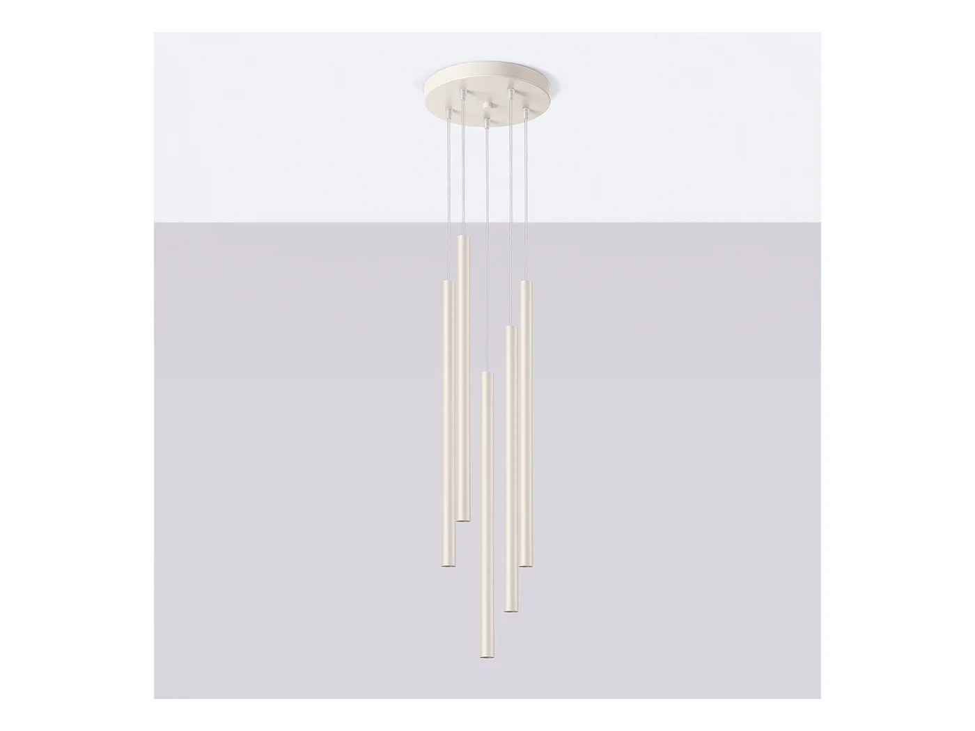 Lampada A Sospensione Pastelo Moderno Di Acciaio - 5 Sorgenti Luminose - L.25 X A.104 Cm - Beige