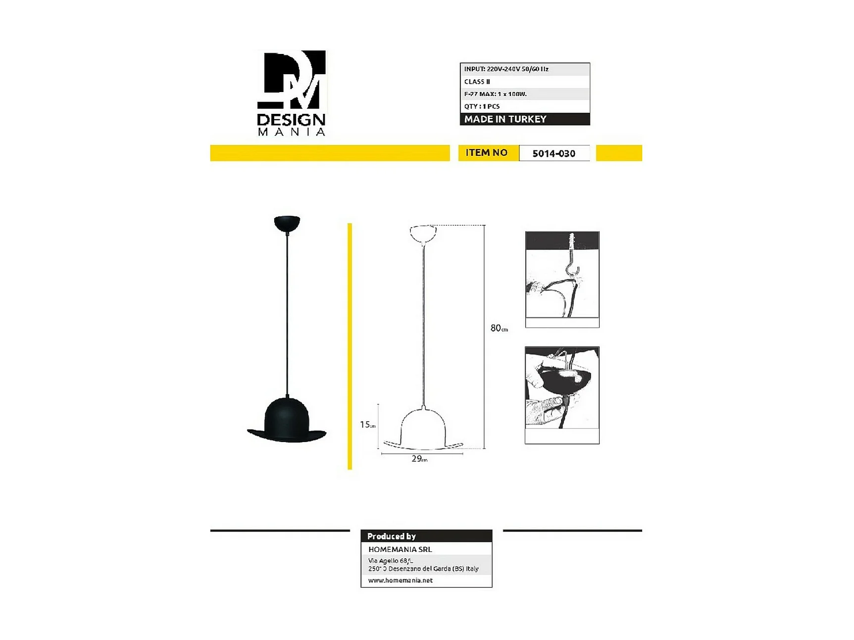 Lampada a Sospensione Bologna, Nero, 29x29x80 cm, EPIKASA