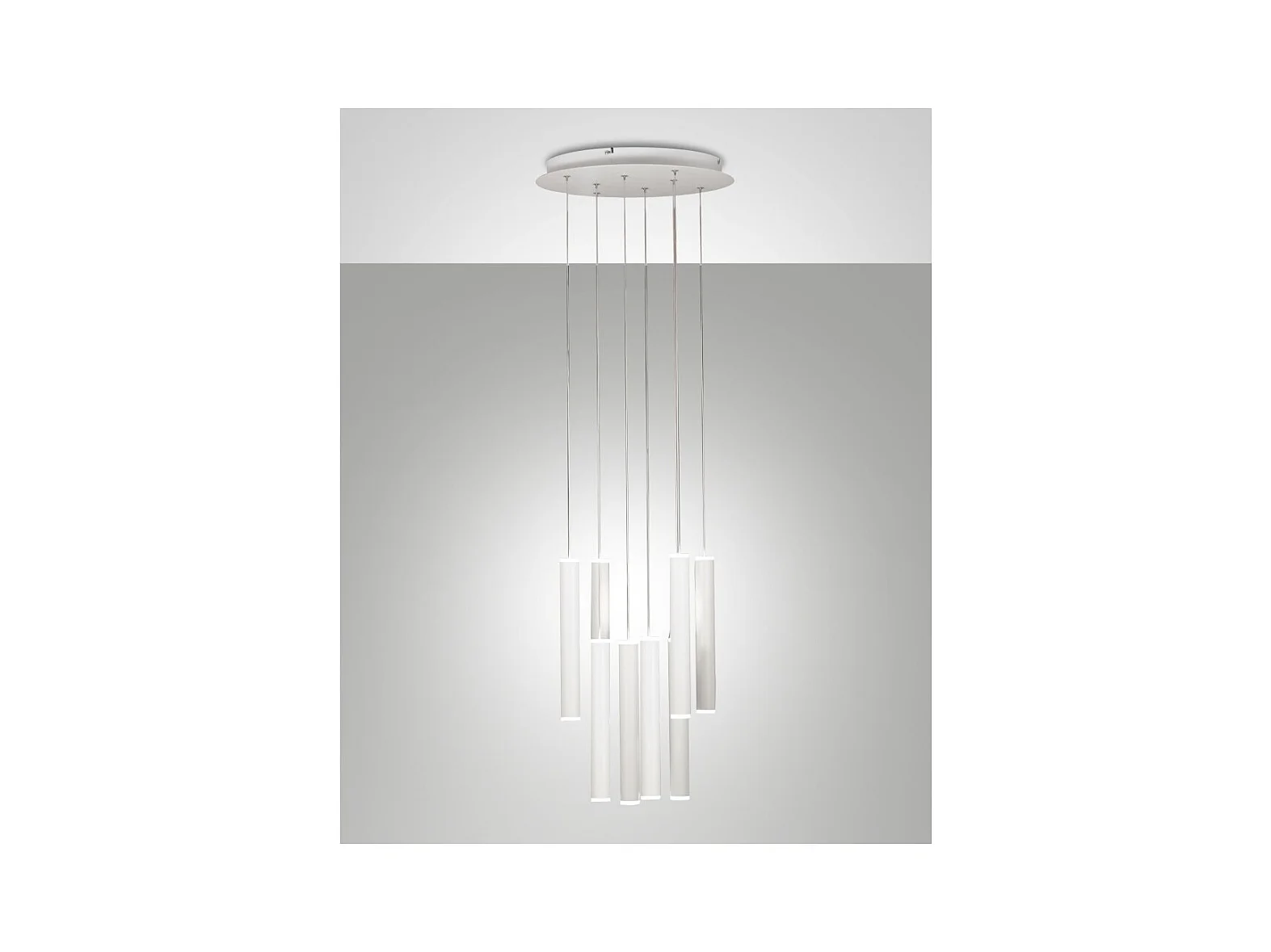 Lampada a sospensione circolare Prado 8 luci Fabas Luce - LED 52 W dimmerabile - Bianco opaco Rosone rotondo