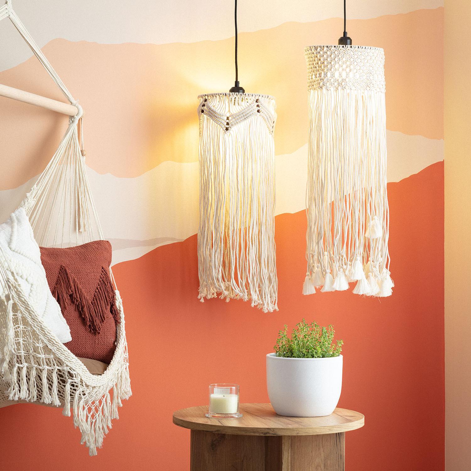 Lampada a Sospensione Cotone Macramé Hupa Bianco Rotto