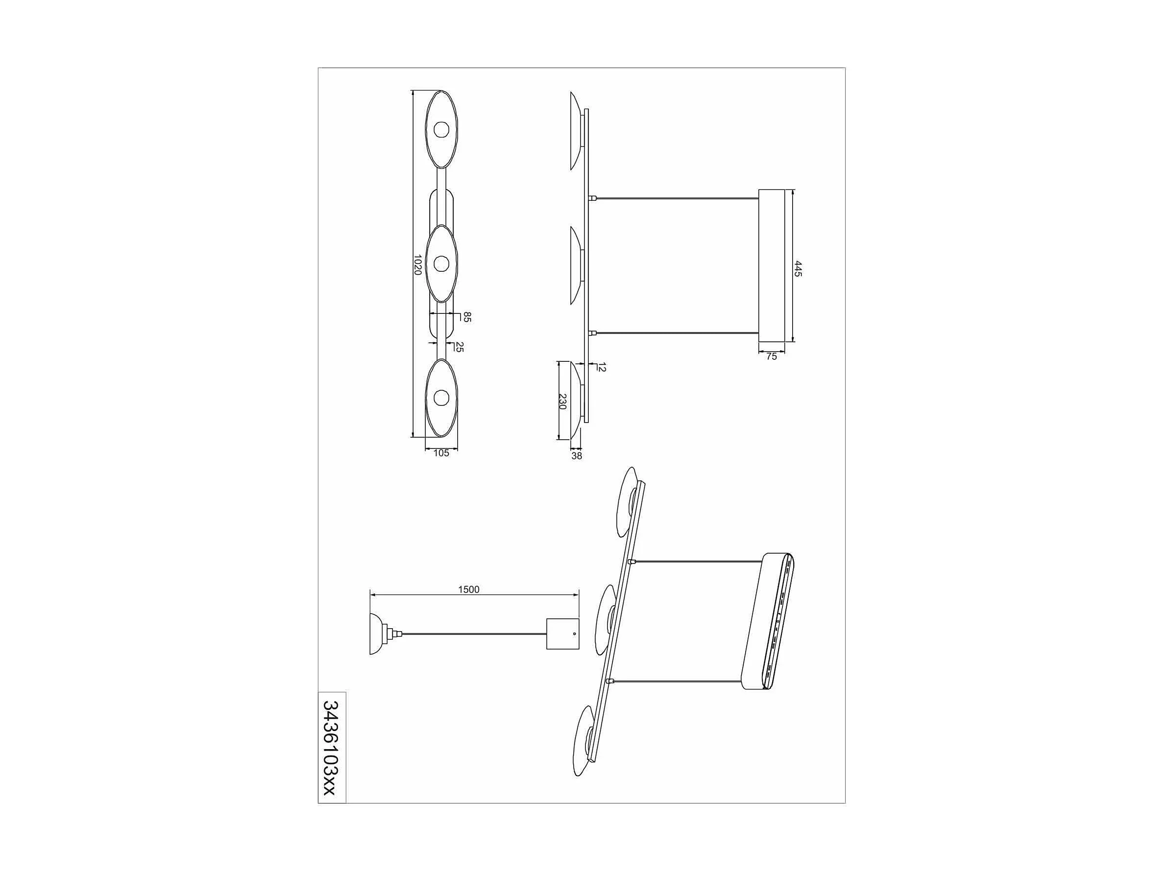 Lampada a sospensione LED 3 diffusori, ottone anticato, L 102 cm, Merton