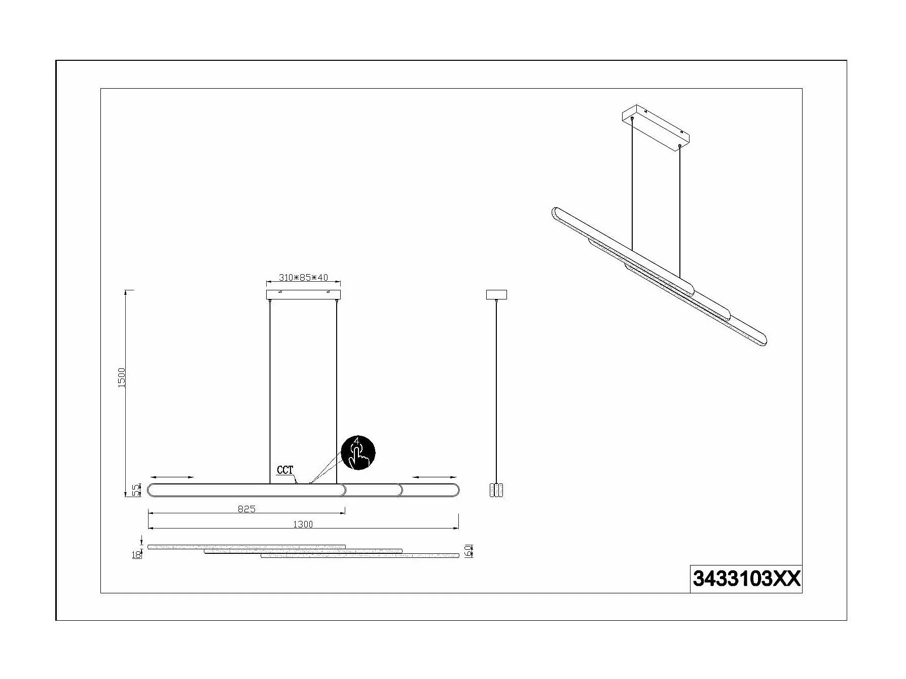 WAVES-3 SP, Sospensione in metallo nero, Ideal Lux
