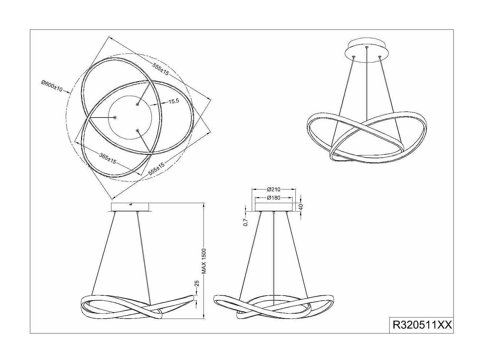 Lampada a sospensione LED, metallo, alluminio, 150,5x150x6 cm, Trajan