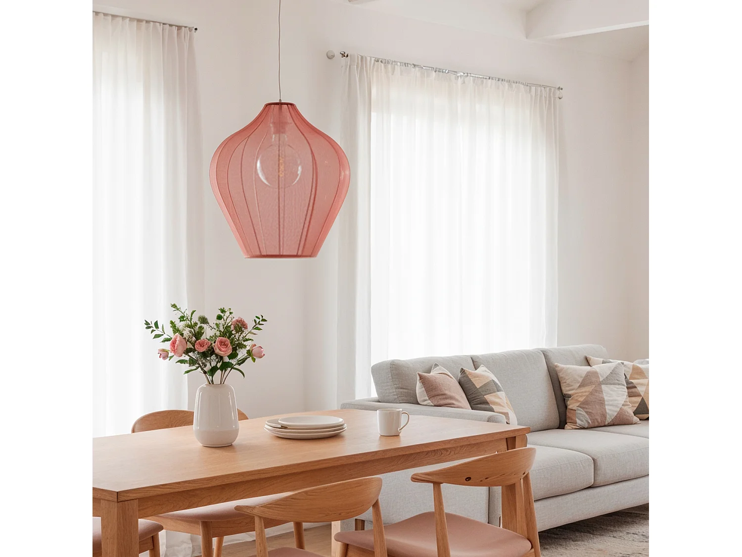 Lampada a Sospensione Metallo e Tessuto Ø400 mm Yara Rosa cipria