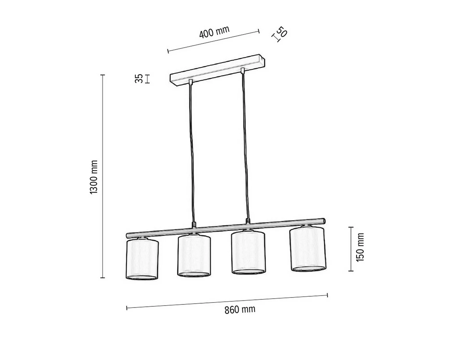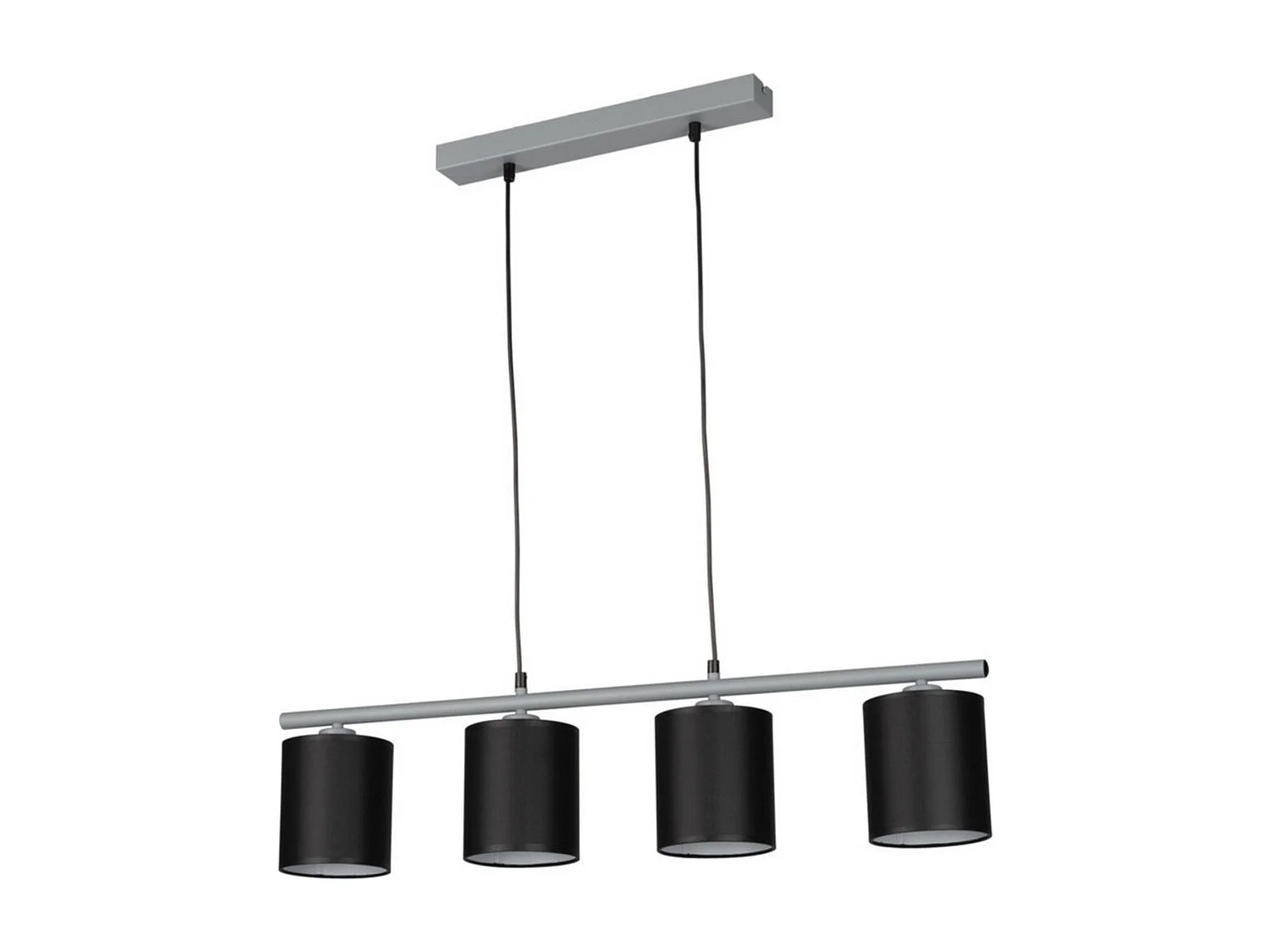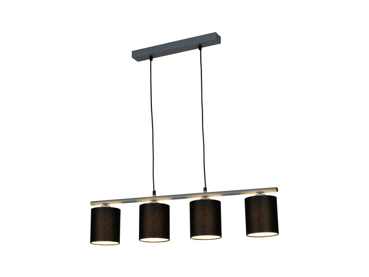 4 sorgenti luminose, per un'illuminazione ottimale anche per ambienti di grandi dimensioni. Paralumi in tessuto nero, per un look elegante e senza tempo che enfatizza il design moderno. Rivestimento del padiglione e traversa grigi, per un tocco industriale.