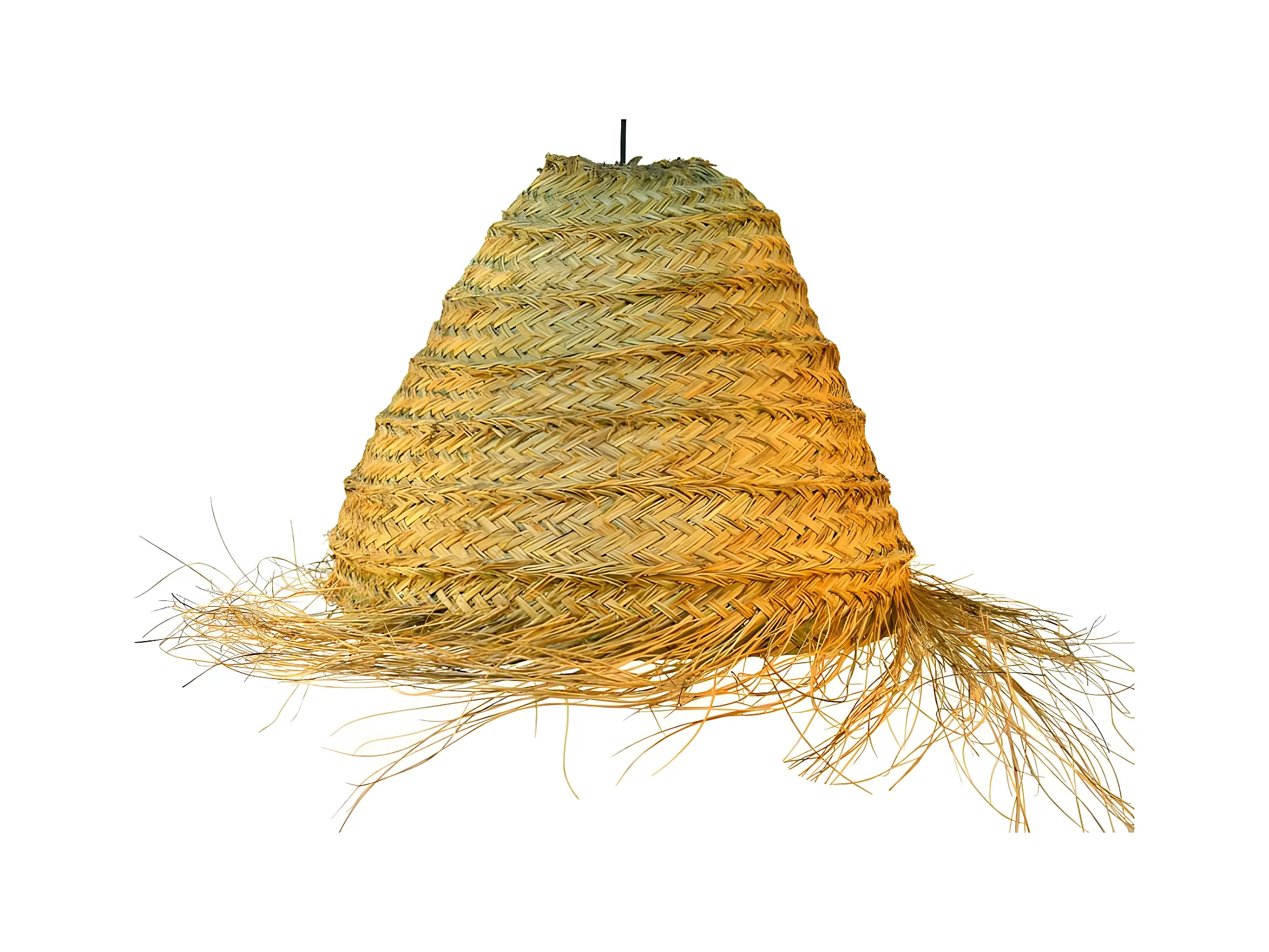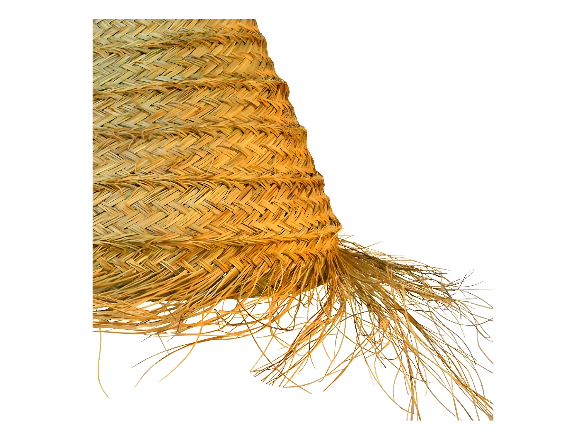 Lampada a sospensione Siegra fatta a mano in erba sparto con frange lunghe 1xE27 ø27cm