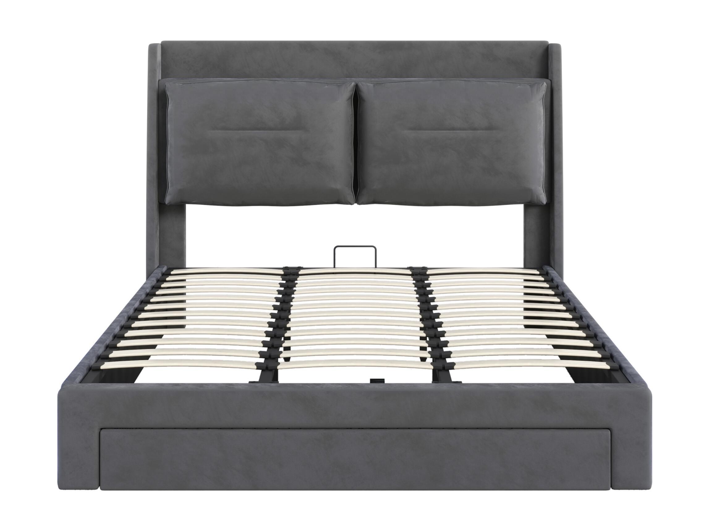 Lampada capitonnè LED 180x200 velluto grigio foncé con cassetto idraulico e cassetti integrati