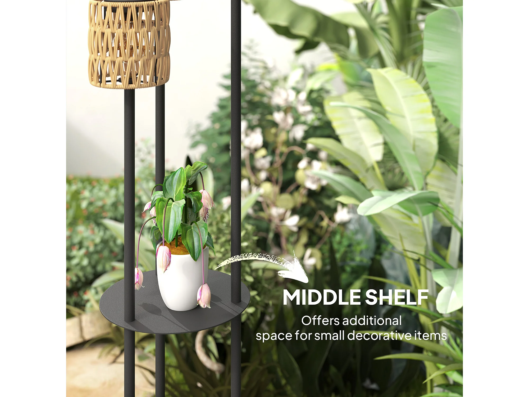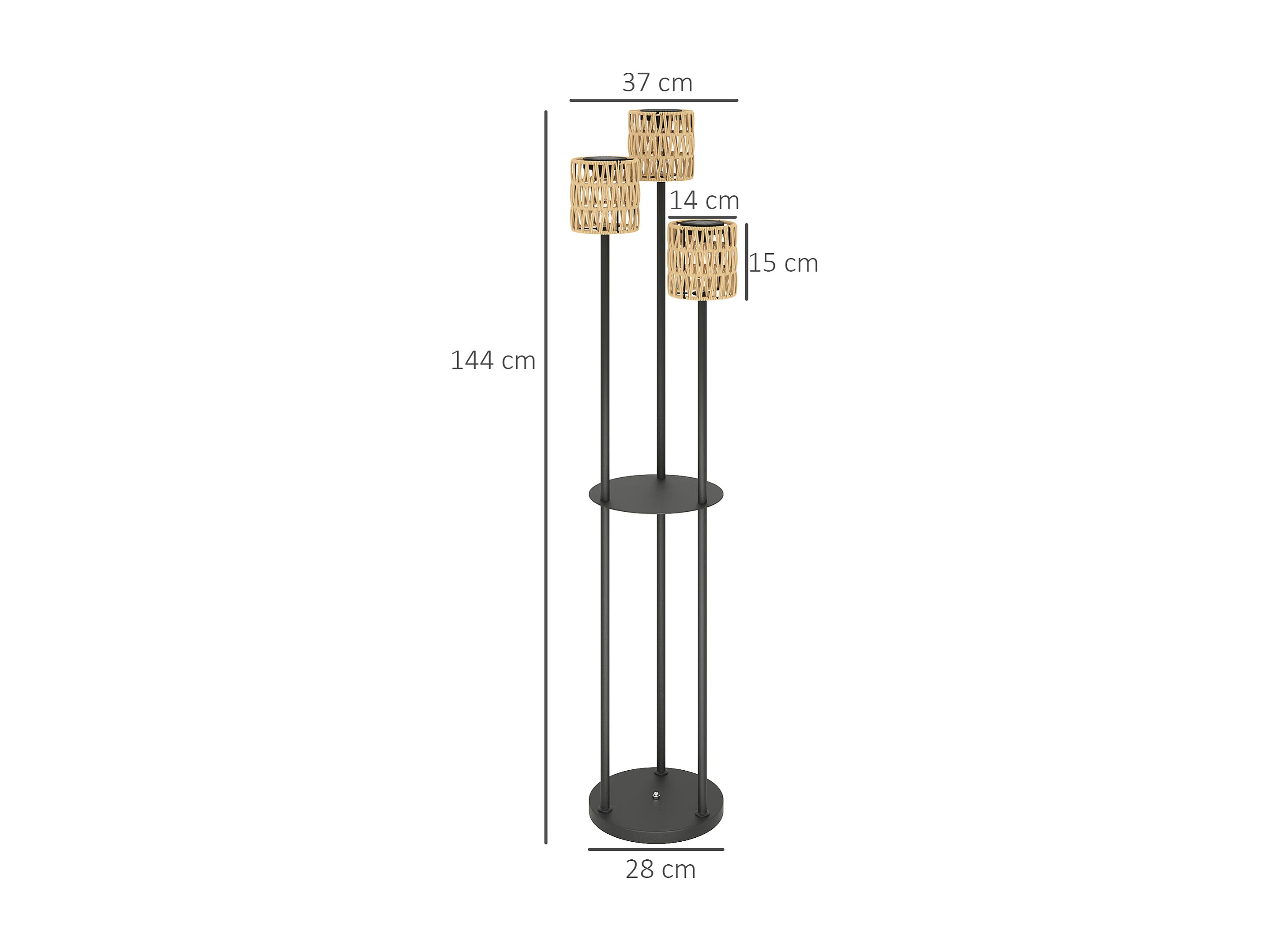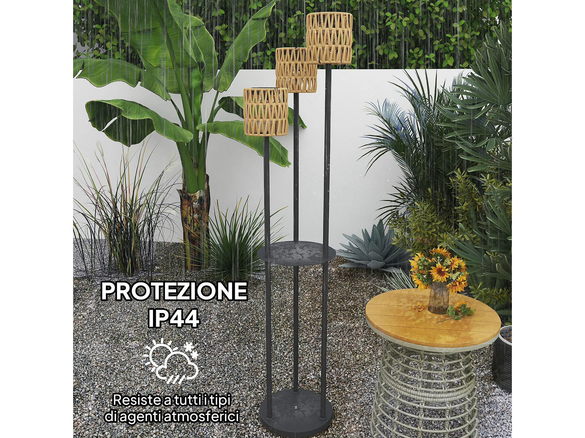 Lampada da esterno solare a 3 luci con ripiano centrale nero e giallo