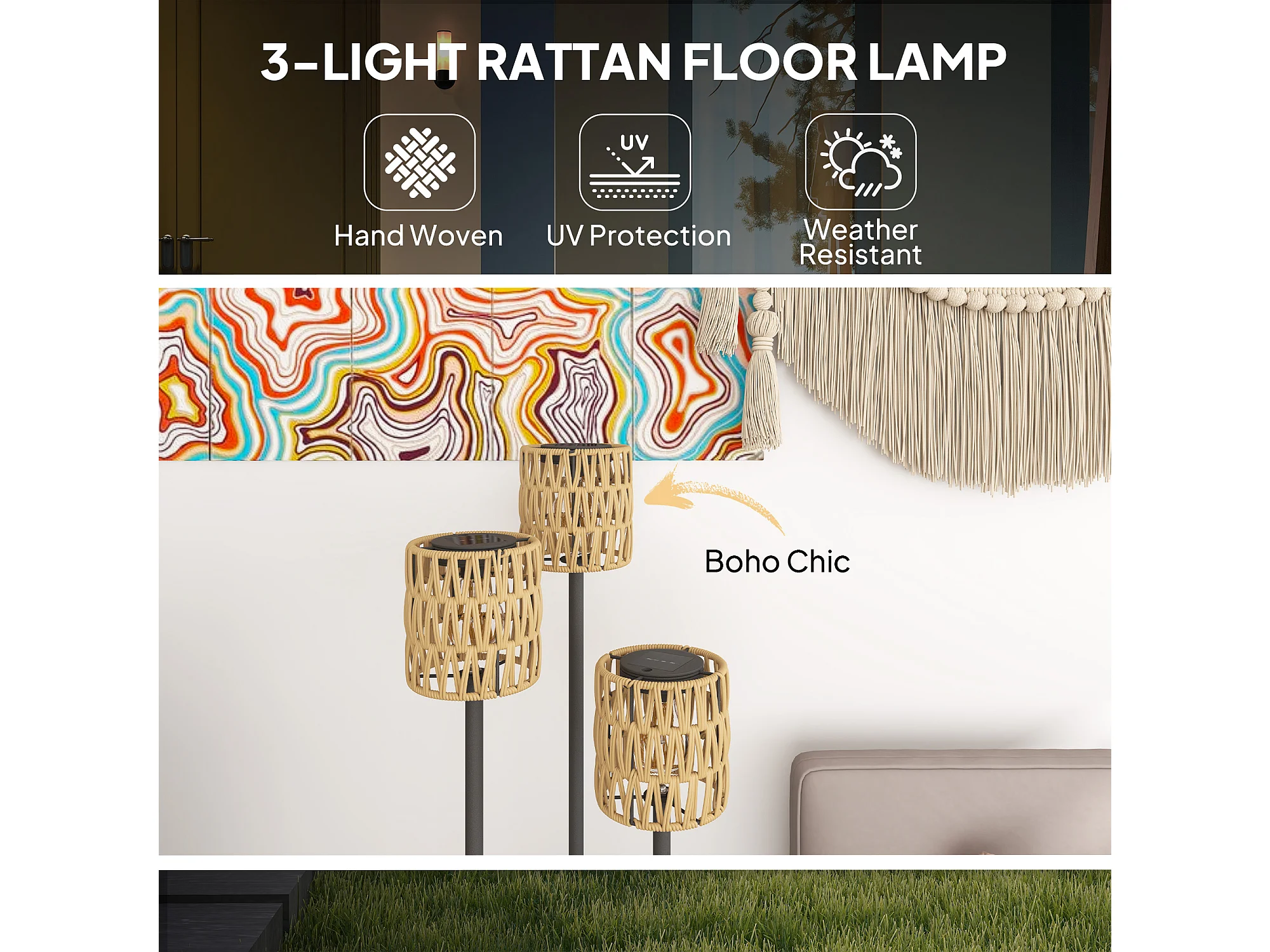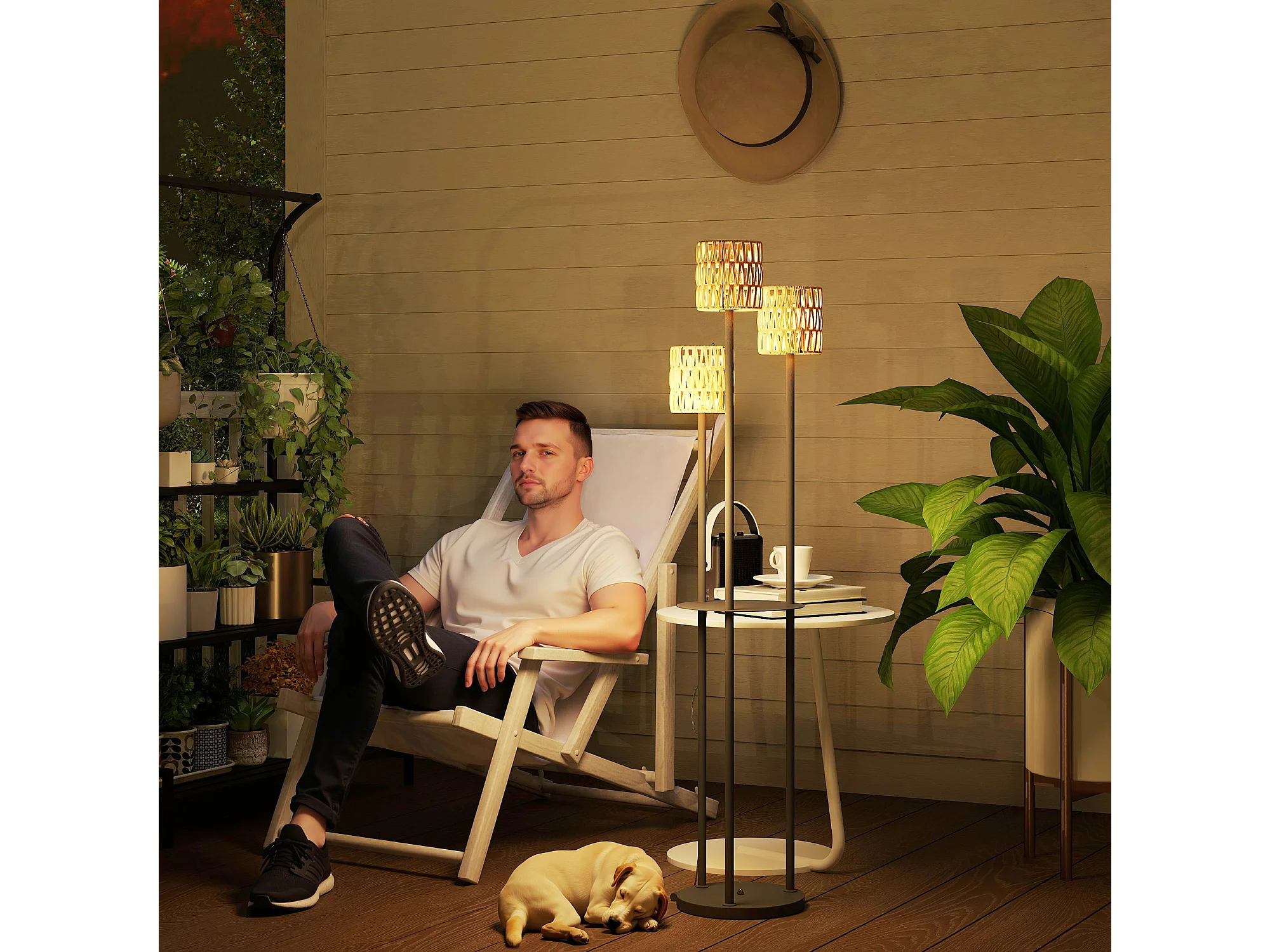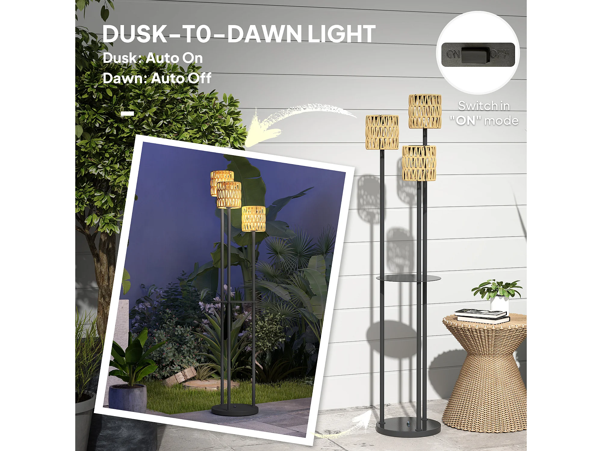 Lampada da esterno solare a 3 luci con ripiano centrale nero e giallo