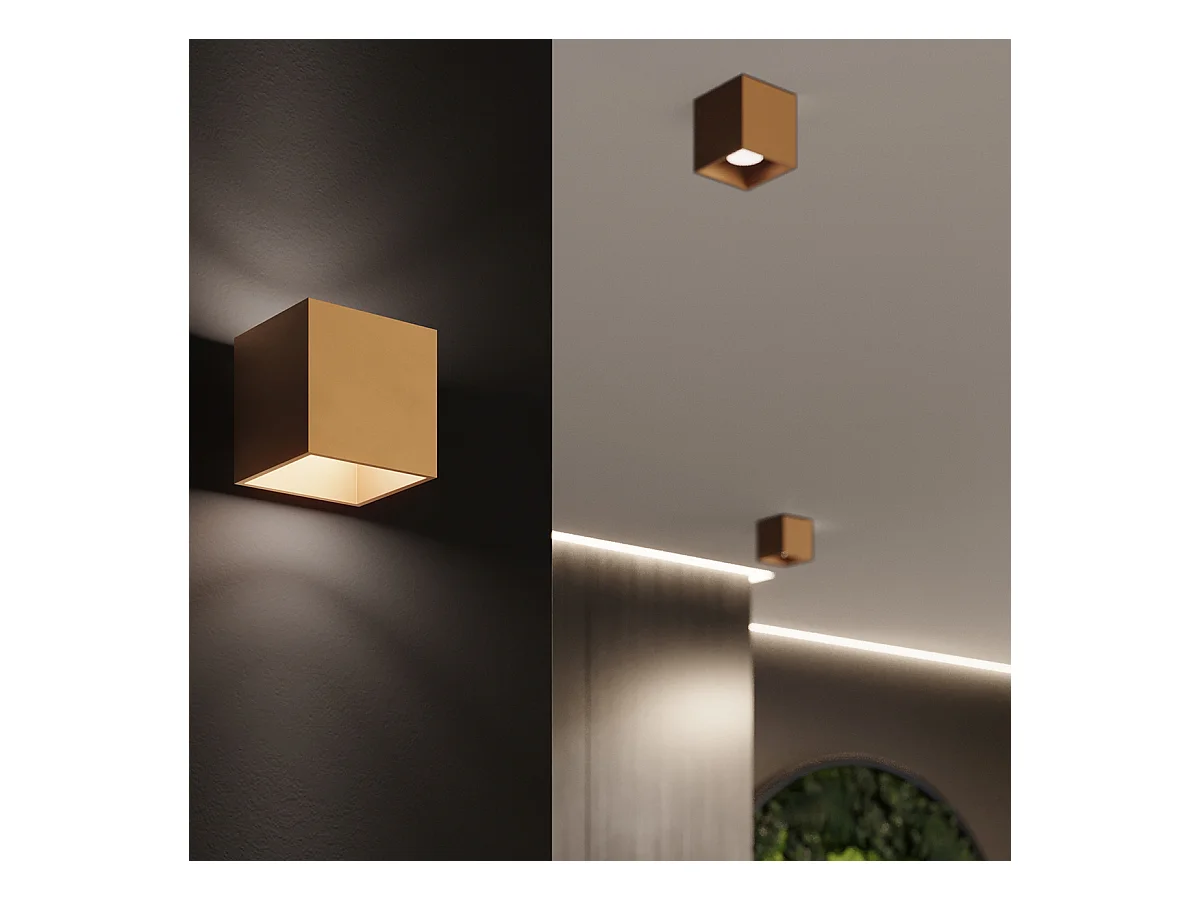 Lampada Da Parete Quad Minimalista Di Acciaio - 1 Sorgenti Luminose - L.10 X A.10 Cm - D'Oro