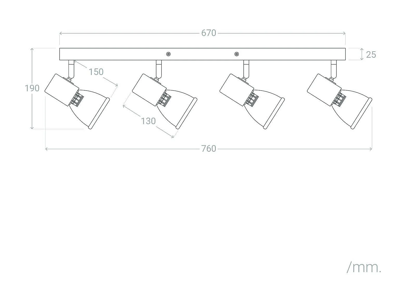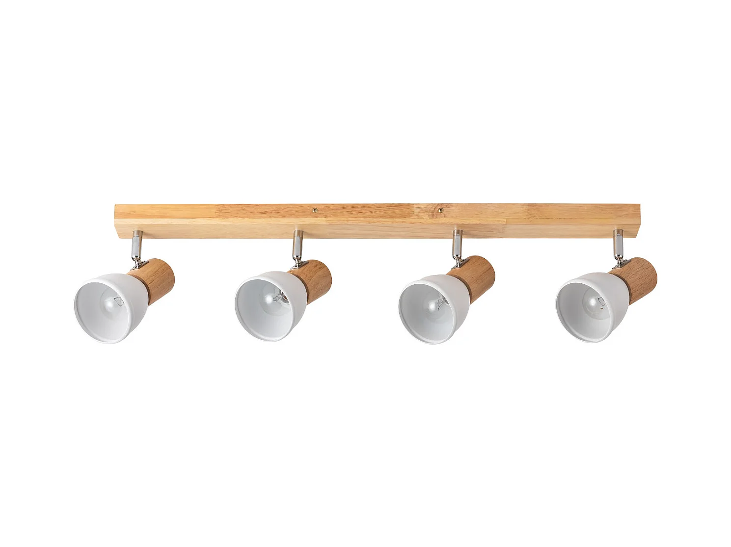 Lampada da Soffitto Metallo e Legno 4 Faretti Tautau Bianco