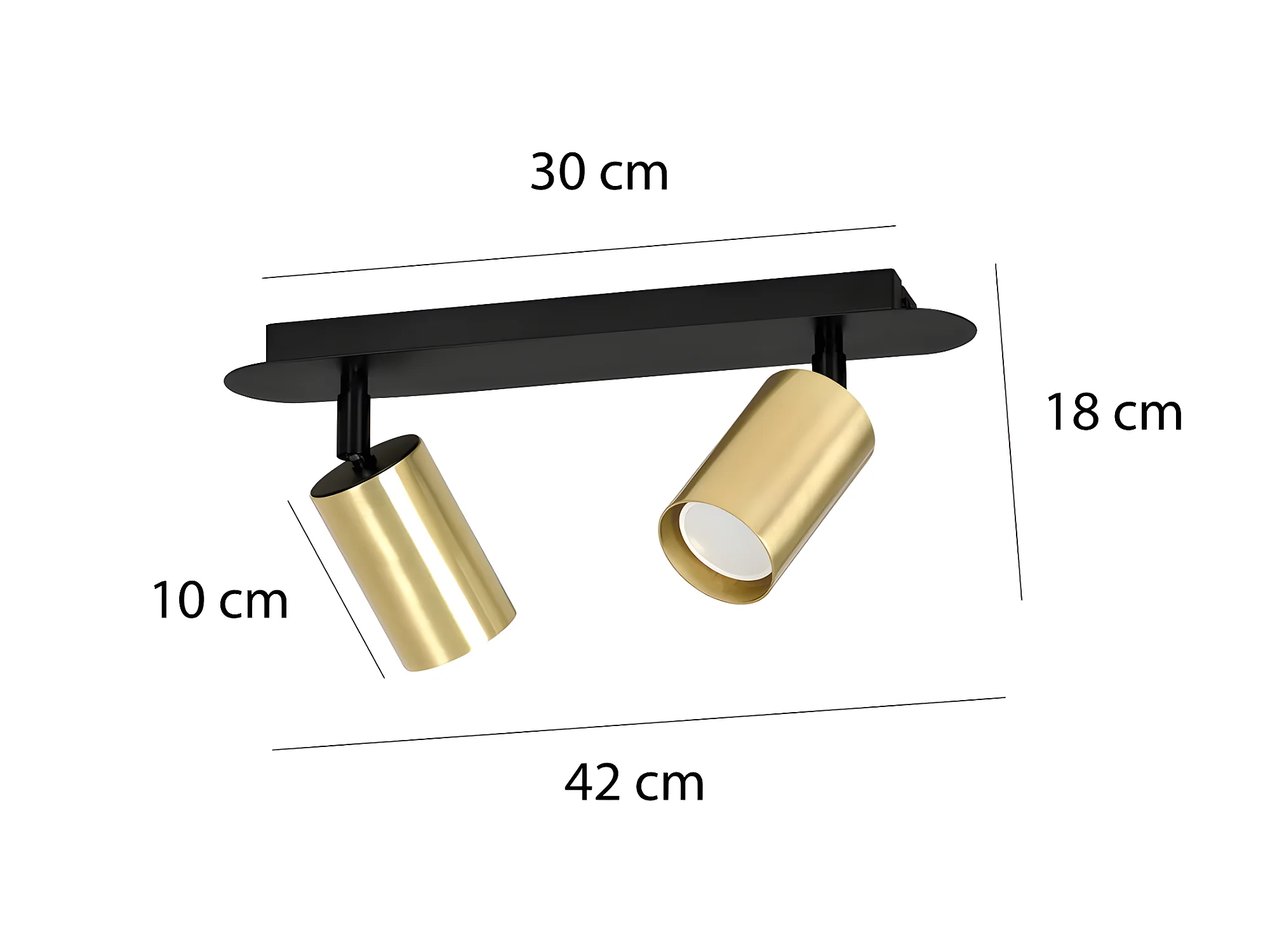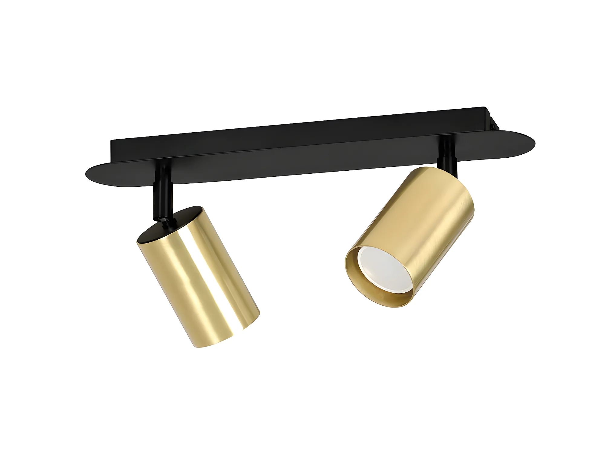 Lampada da soffitto moderna Tao nera con 2 faretti orientabili dorato 2xGU10