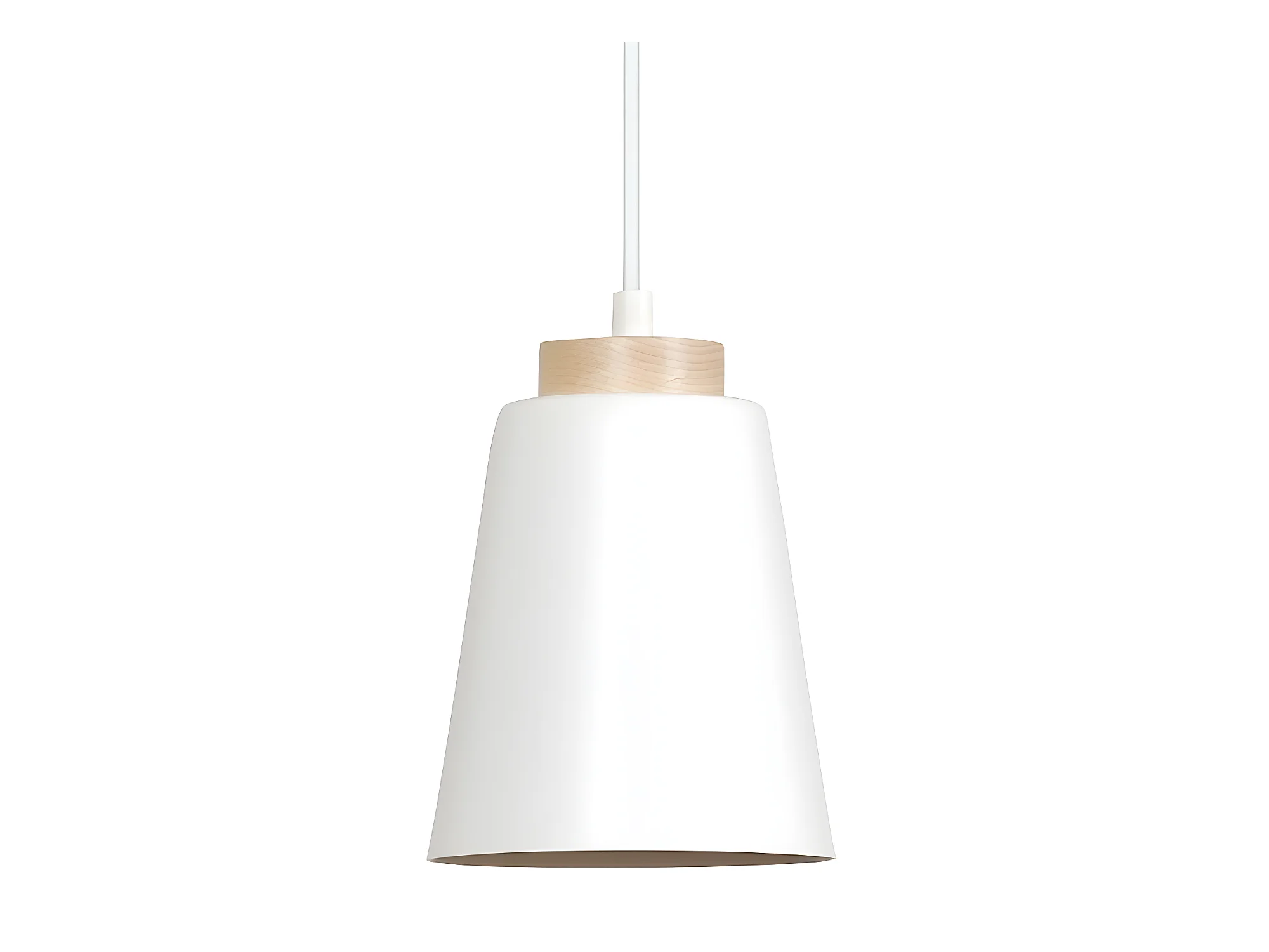 Lampada a sospensione nordica Lasso con paralume bianco e dettaglio in legno 1xE27 ø14cm